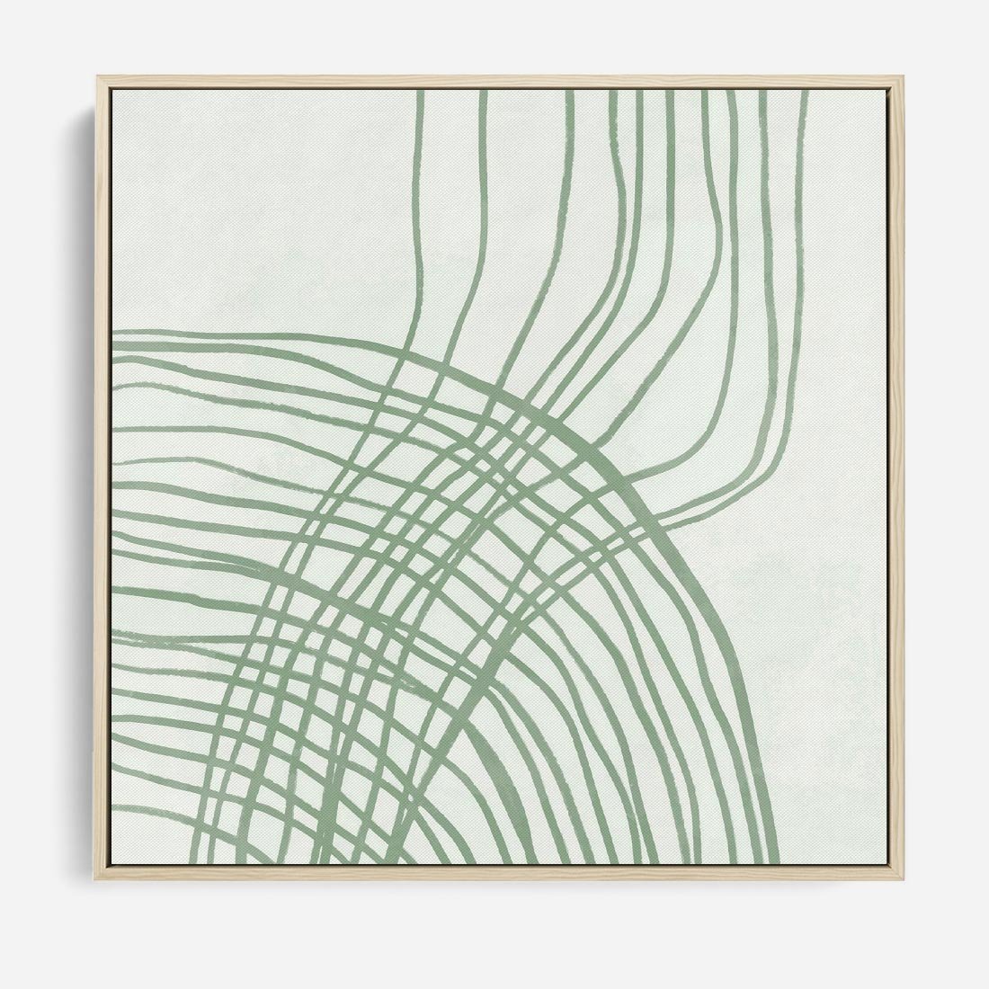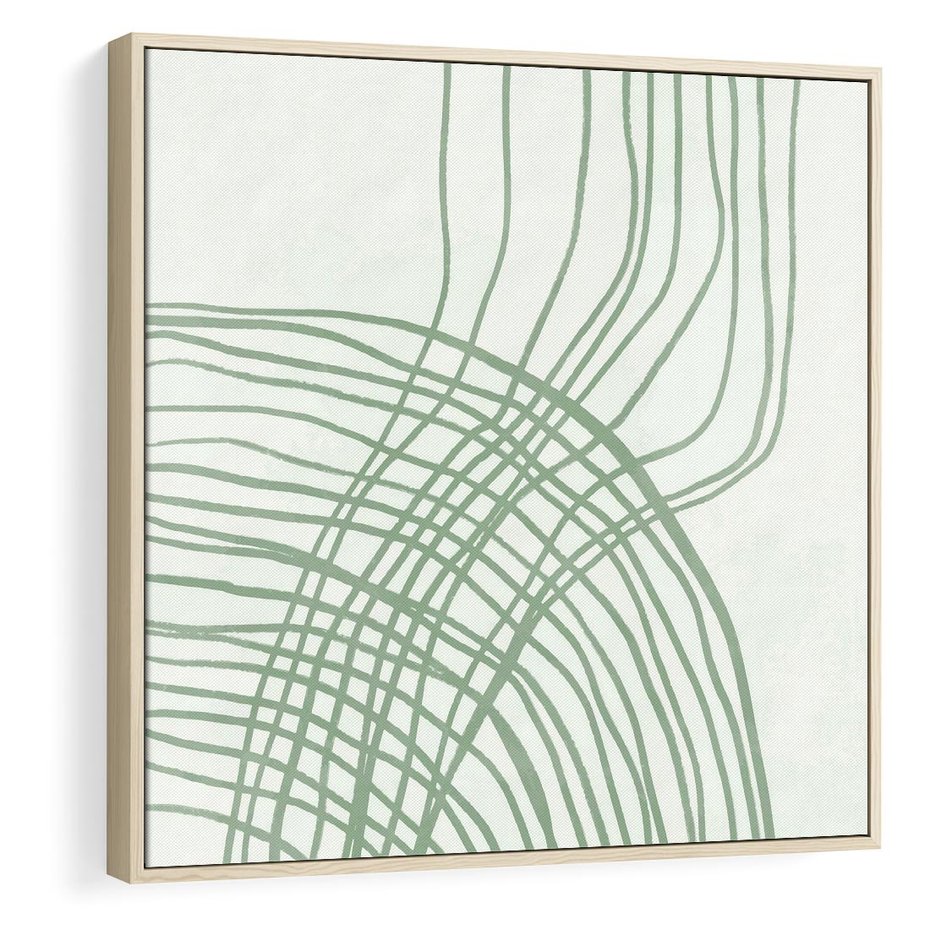 Obraz w ramie 80x80 - Migotliwa Spokojna Zieleń - zielony plakat, abstrakcyjne splątane linie - rama drewno