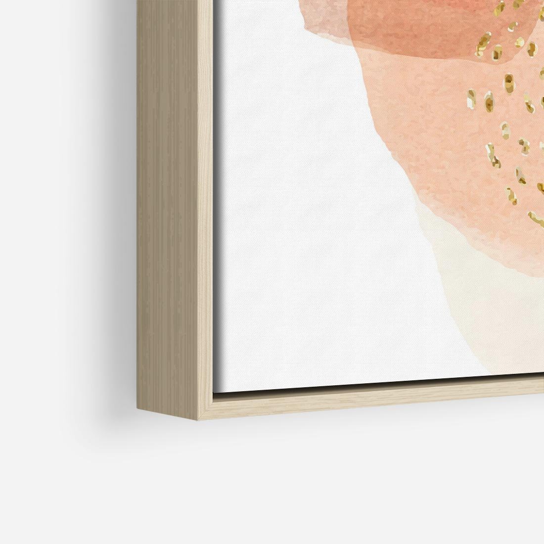 Minimalistyczna kompozycja abstrakcyjnych akwarelowych plam w stonowanych pastelach, ozdobiona subtelnie złotymi elementami. To wyrafinowane dzieło sztuki, które w prostocie wyraża piękno i harmonię.