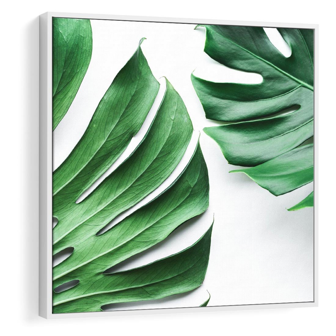Obraz w ramie 80x80 - Monstera - Liście Kwiaty - monstera, liście - rama biała