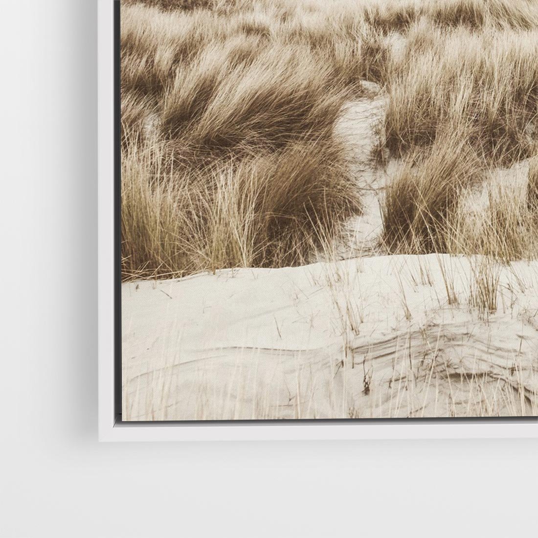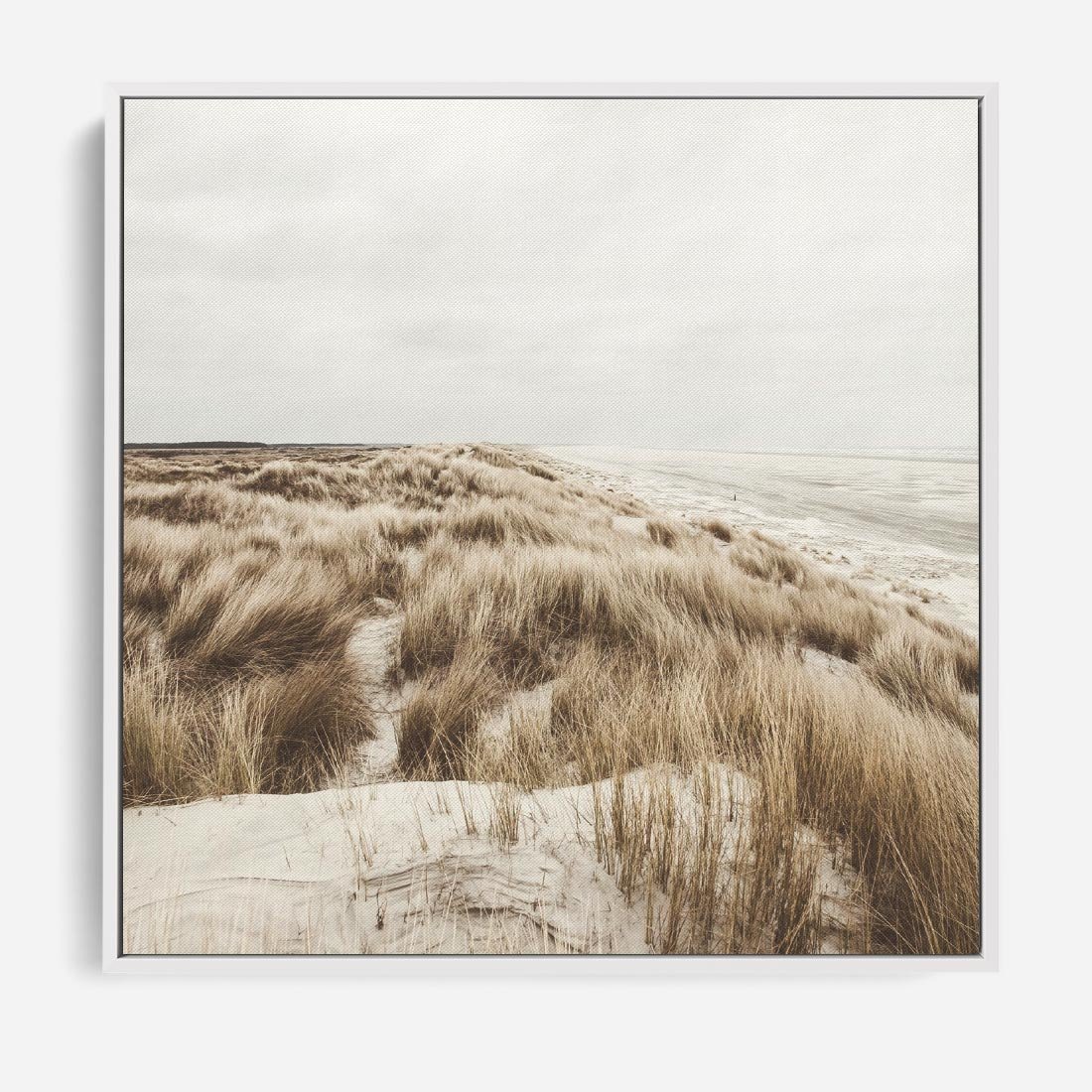 Obraz w ramie 80x80 - Nadmorskie Wydmy - fotografia, kolory sepii - rama biała