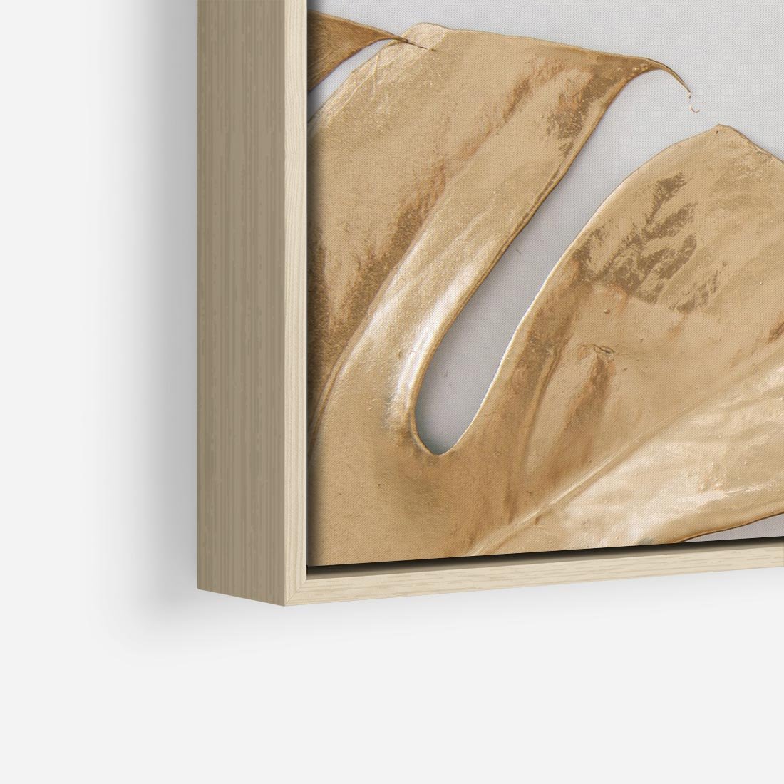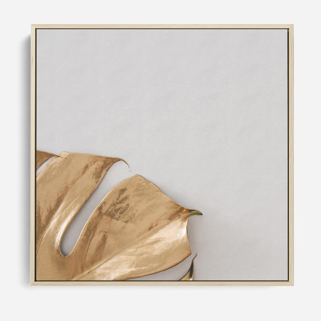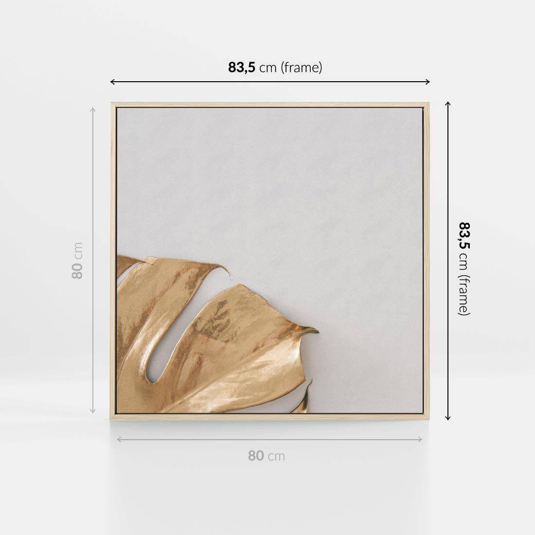 Obraz w ramie 80x80 - Natury Szlachetność - złote, liście - rama drewno