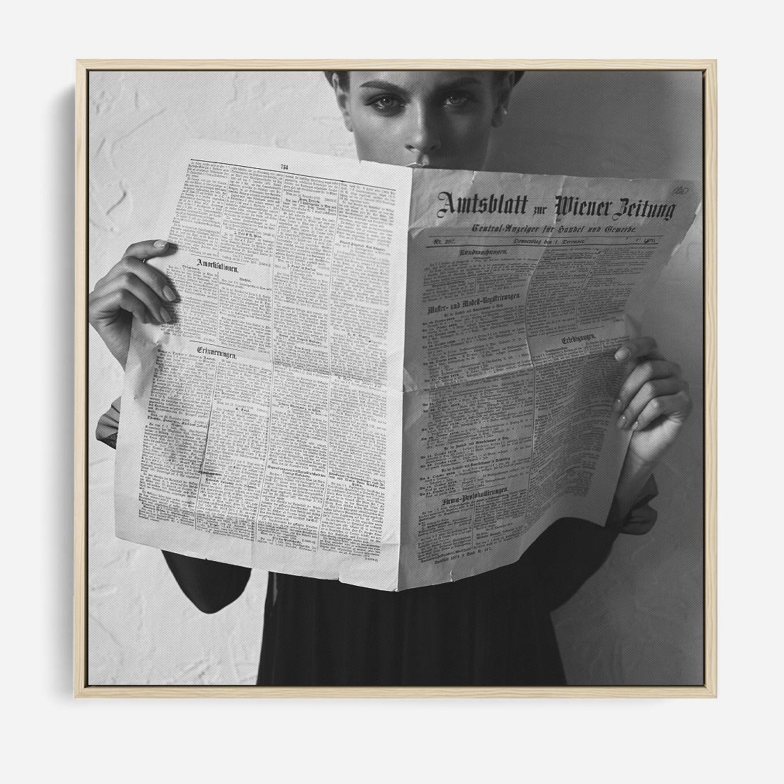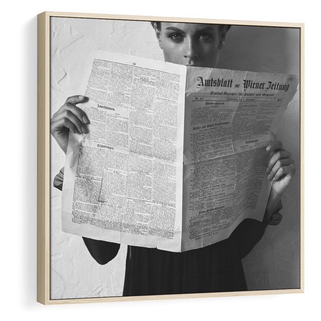 Obraz w ramie 80x80 - Nowe Wiadomości - retro zdjęcie, czarno białe - rama drewno