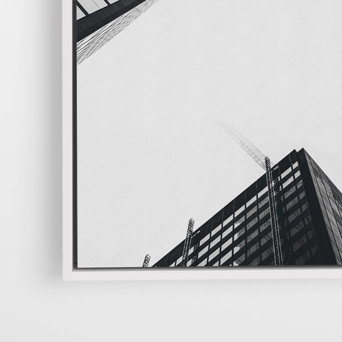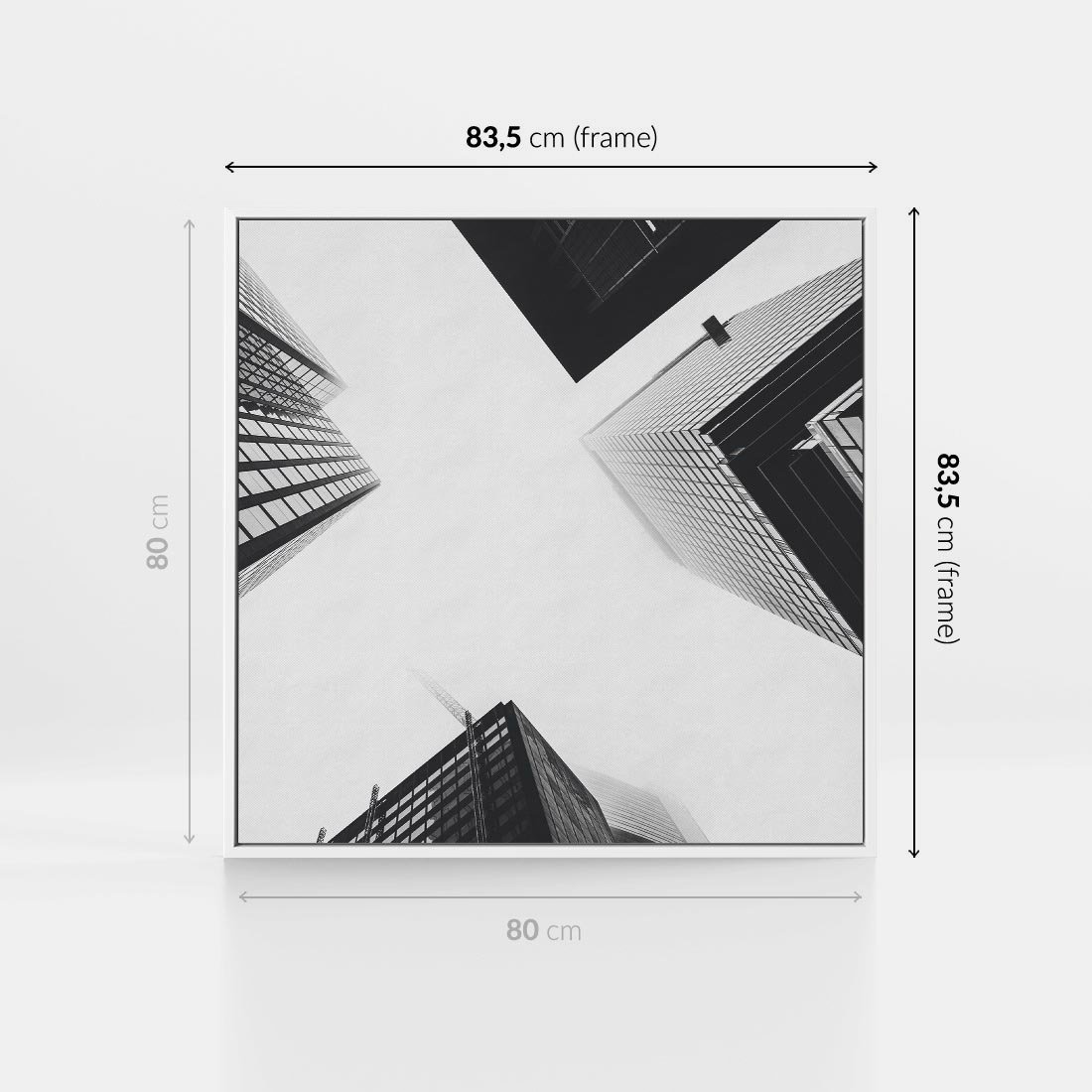 Obraz w ramie 80x80 - Nowoczesna Dynamika - perspektywa, wieżowce - rama biała