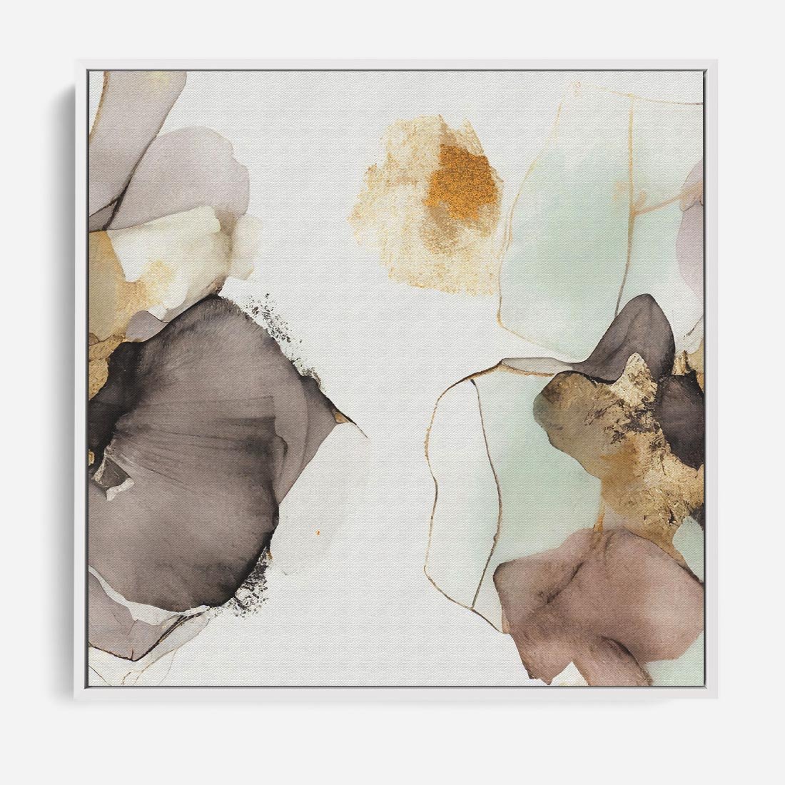 Obraz w ramie 80x80 - Nowoczesne Elegancje - akwarela, złote linie i plamy - rama biała