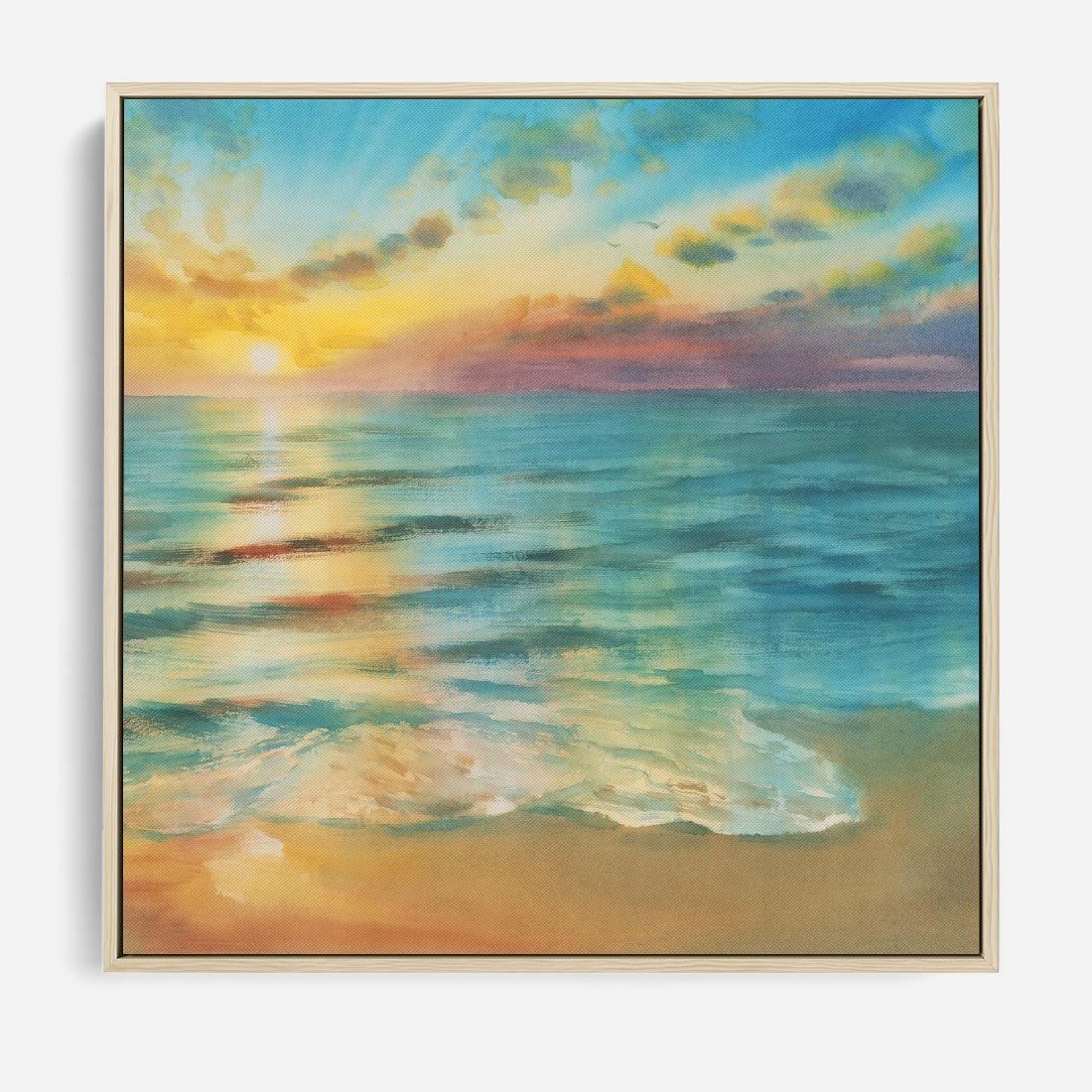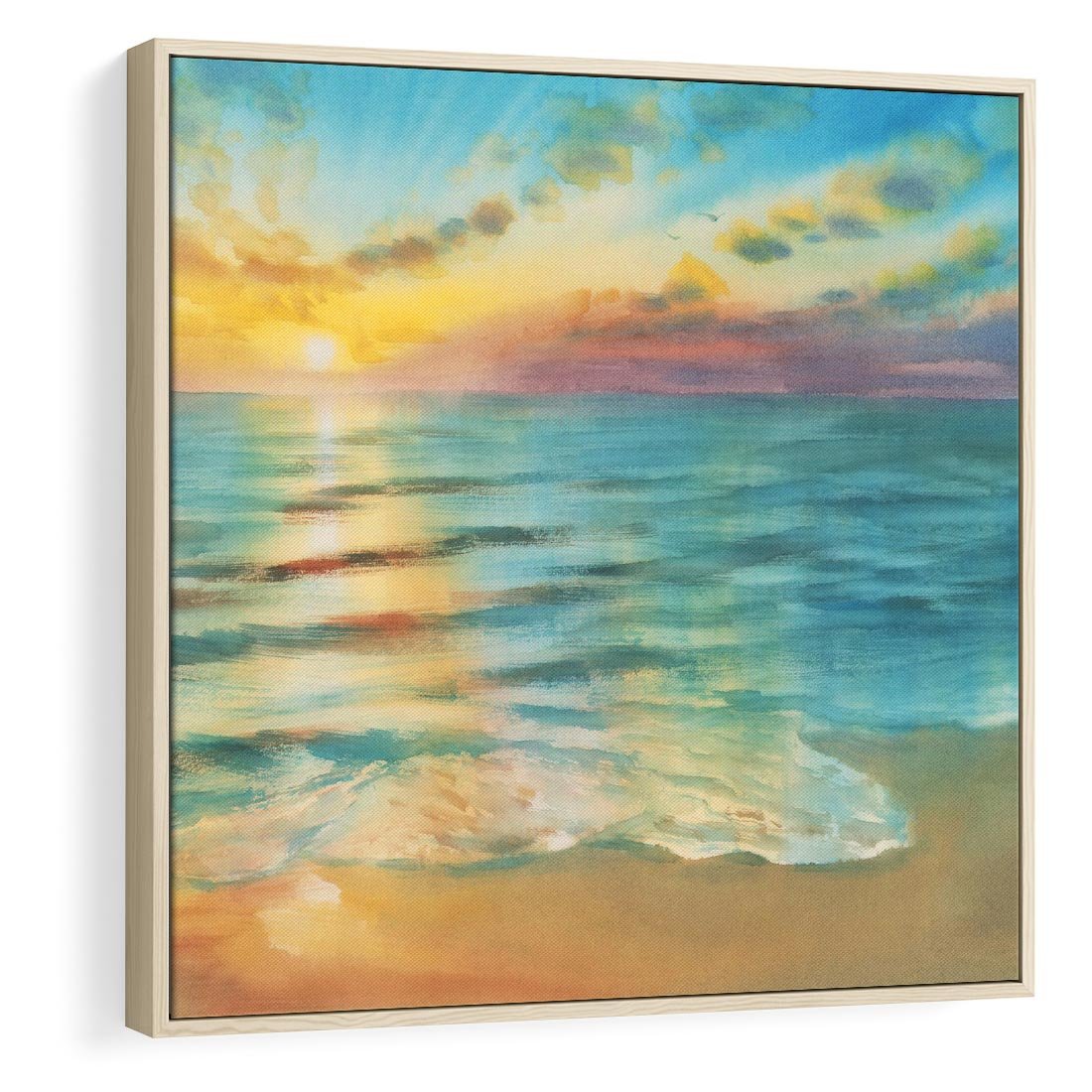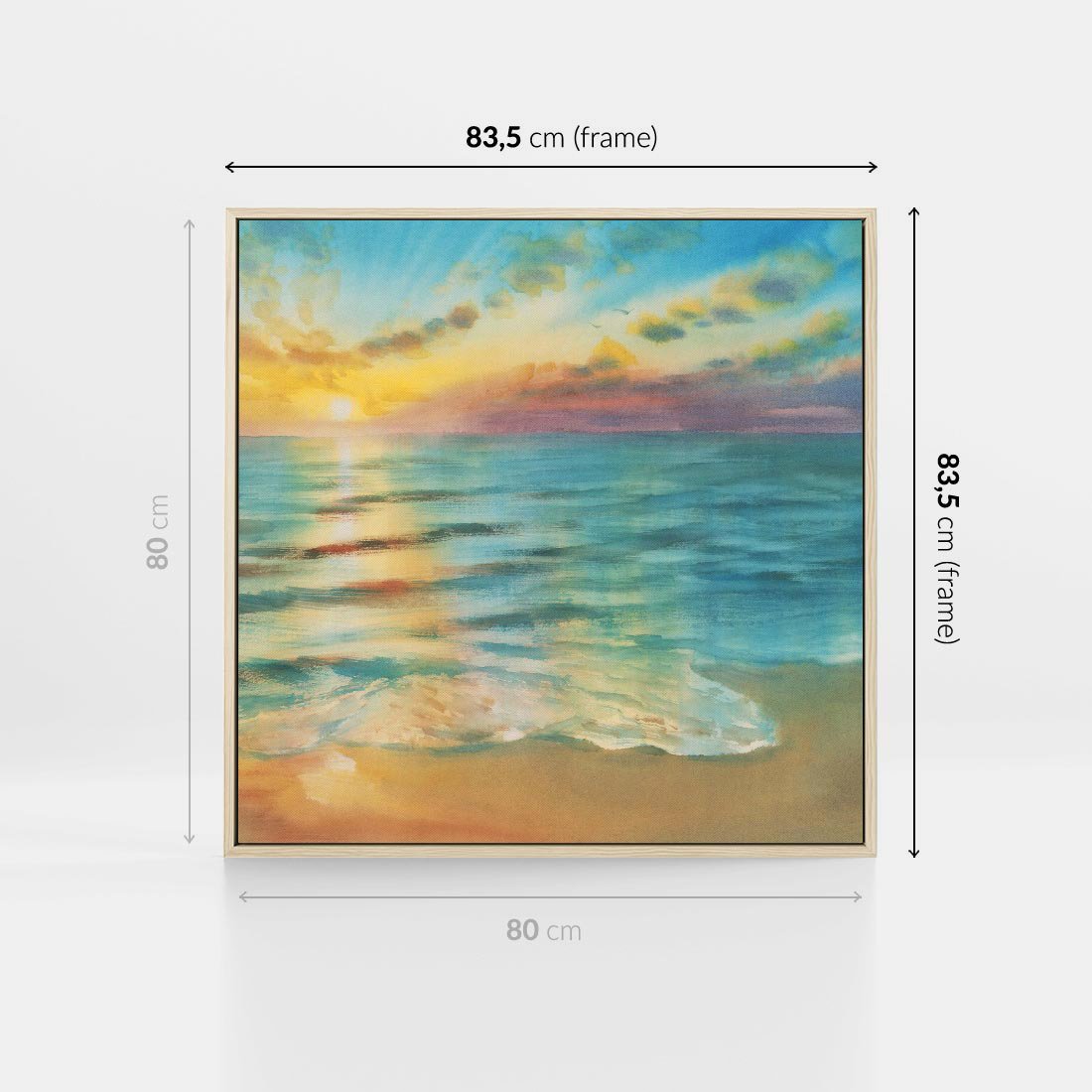 Obraz w ramie 80x80 - Objawienie Fioletowego Świtu - fioletowy wschód słońca, słońce wschodzi nad morzem - rama drewno