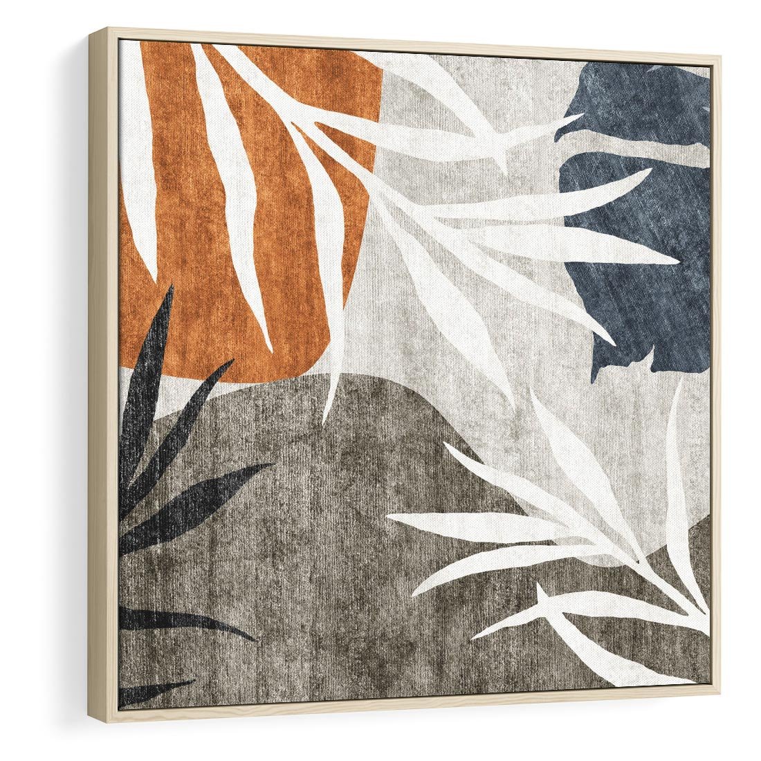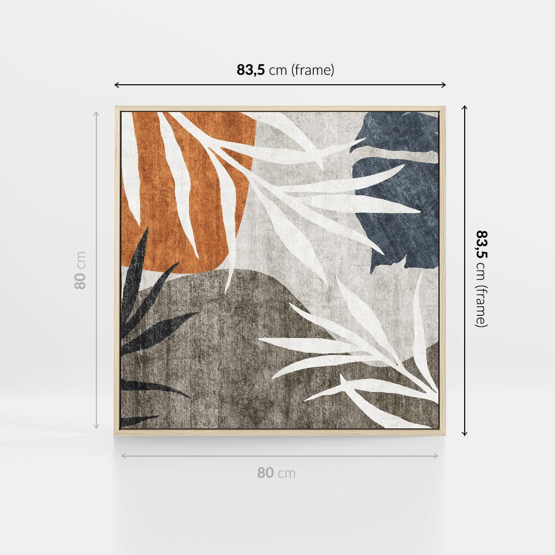 Obraz w ramie 80x80 - Oddechy ciszy i ruchu - rzut liści palmy, monstery - rama drewno
