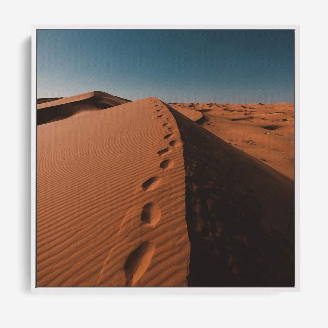 Obraz w ramie 80x80 - Piasek pustyni w ogniu - pustynia, piasek - rama biała