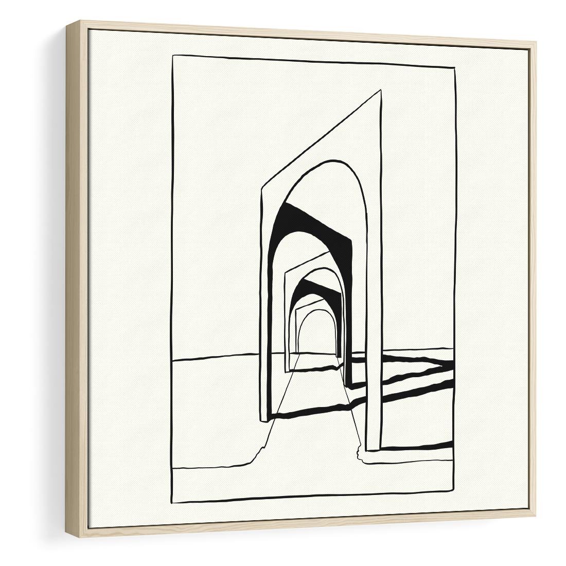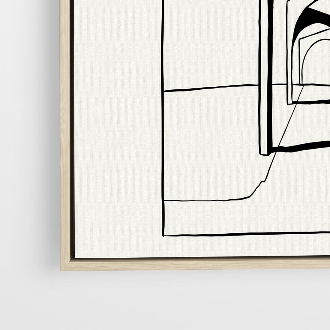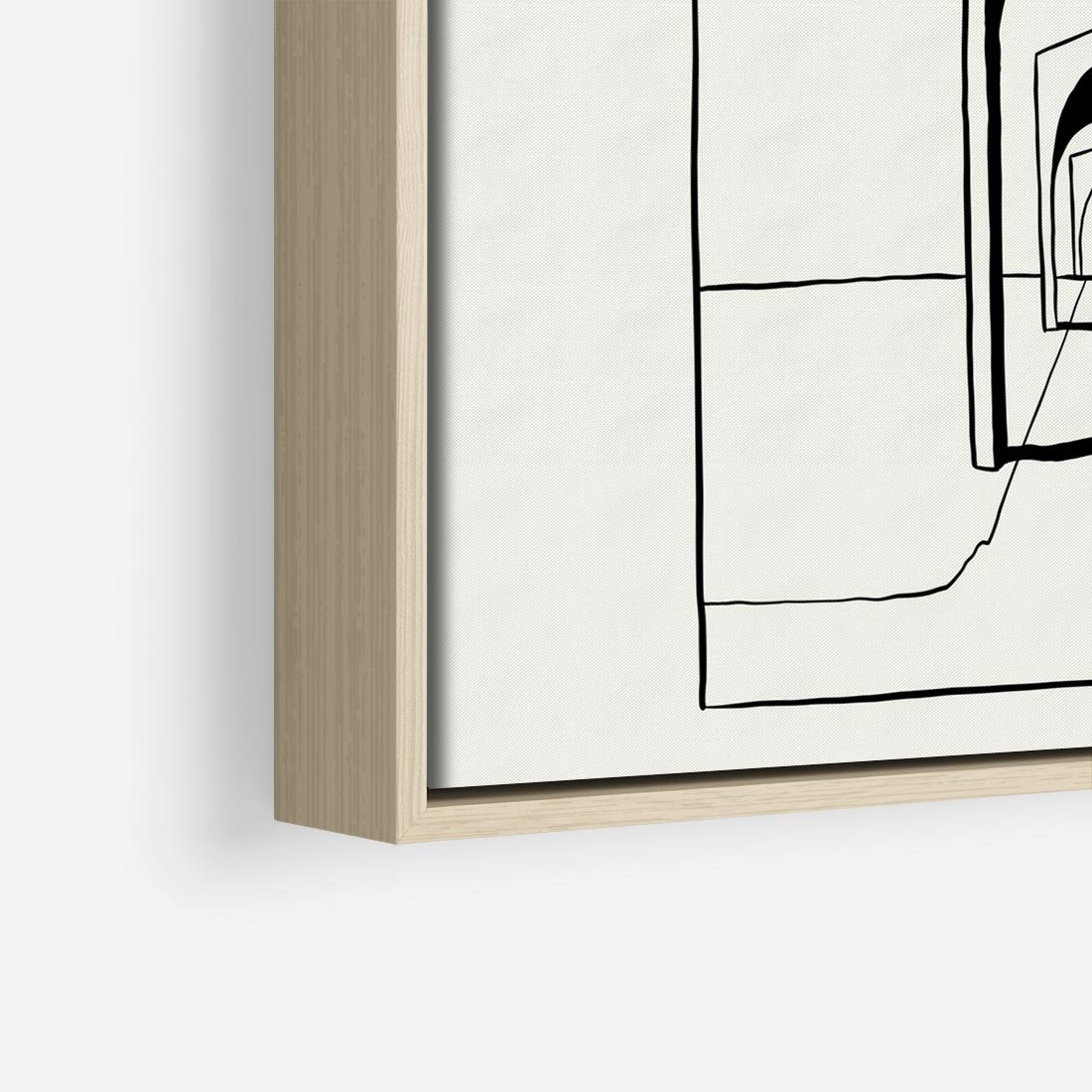 Ta nowoczesna sztuka kieruje uwagę na minimalistyczną piękno architektury, wykorzystując kontrastujące odcienie czerni i bieli. Geometryczne formy ożywają, tworząc kompozycję o wyraźnym i wyjątkowym charakterze.