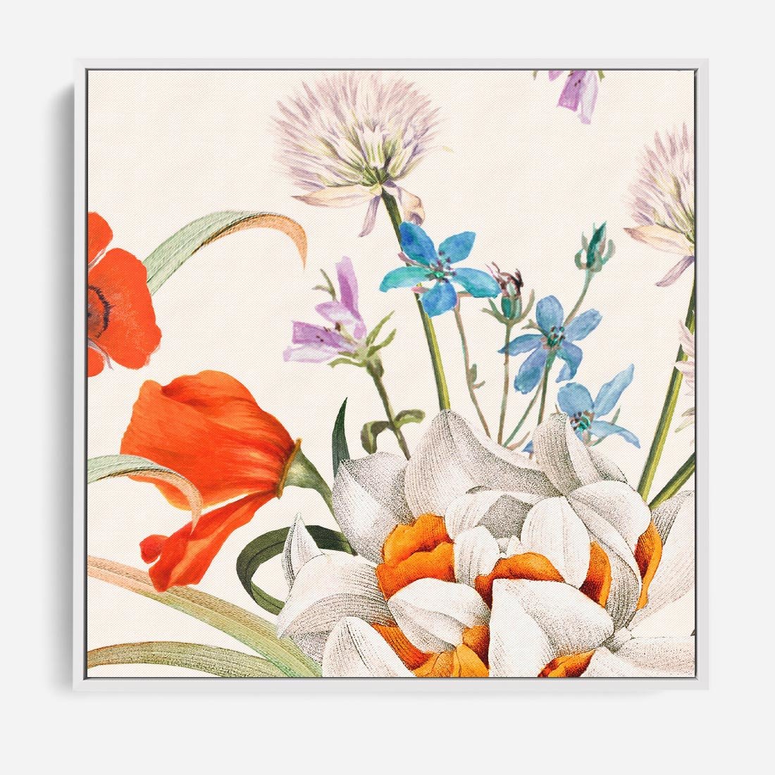 Obraz w ramie 80x80 - Polne Kwiaty - polne kwiaty, na białym tle - rama biała