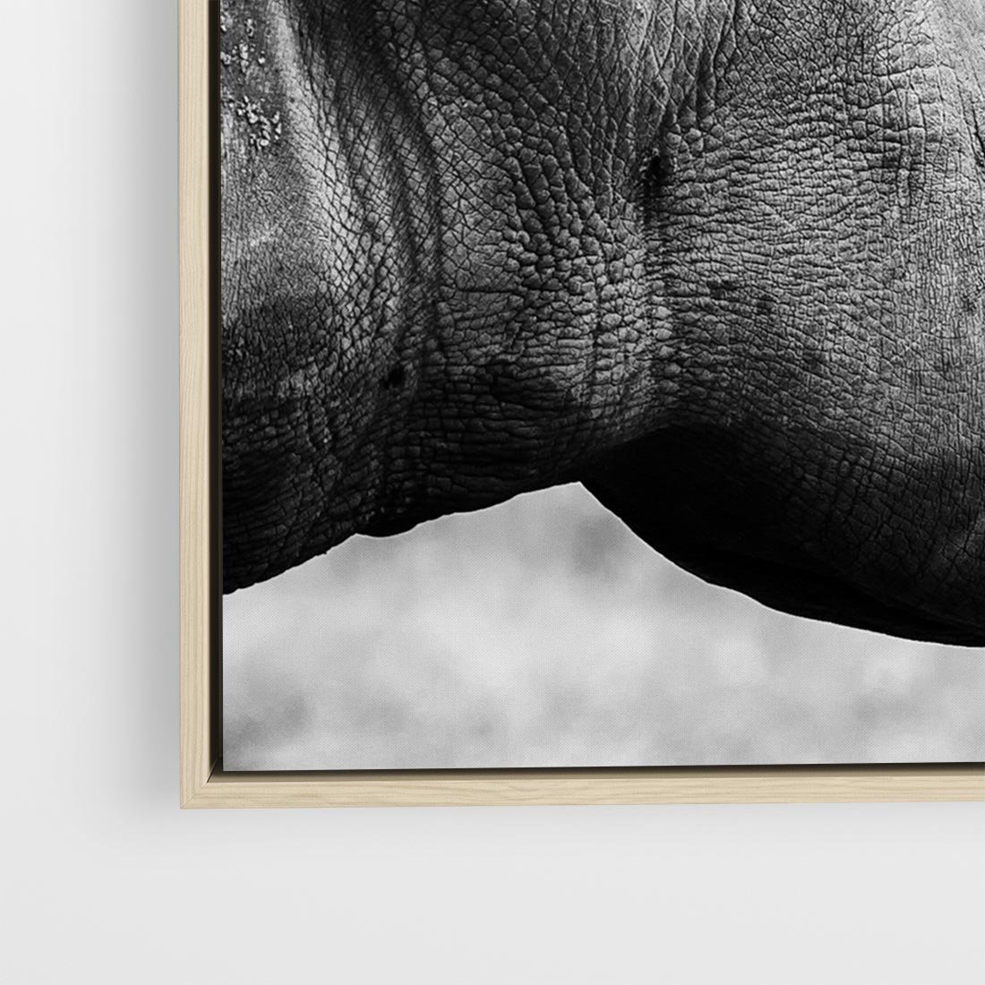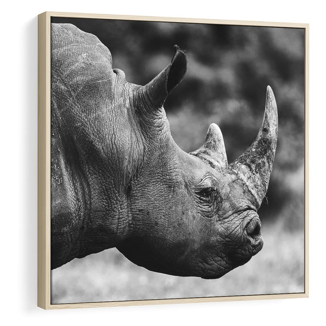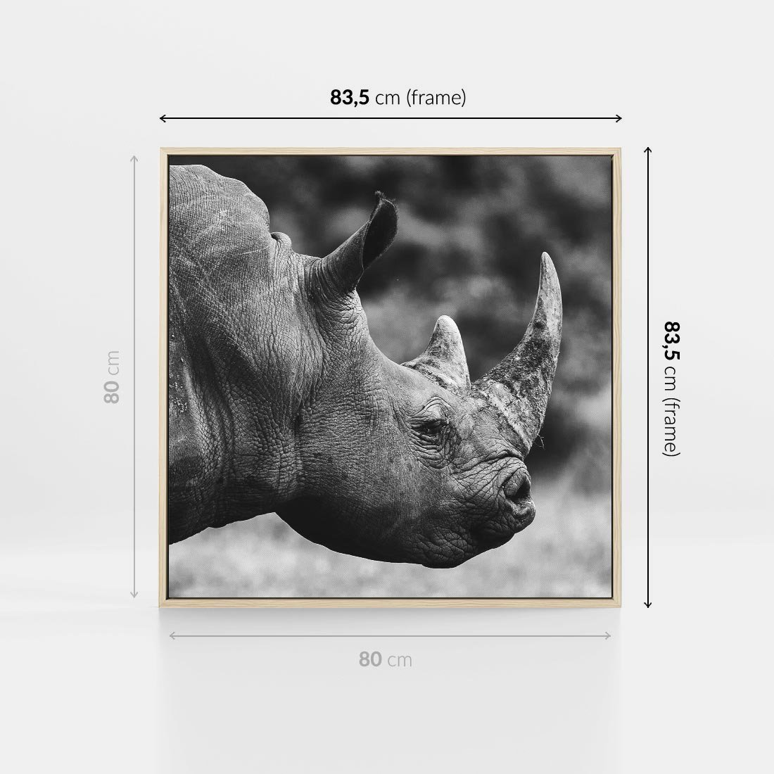 Obraz w ramie 80x80 - Potęga Afryki - czarno biała fotografia, zbliżenie na postać nosorożca - rama drewno