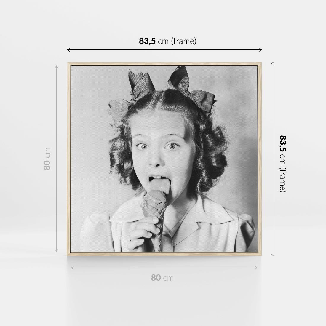 To urocze retro zdjęcie w czerni i bieli ukazuje dziewczynkę, która z apetytem delektuje się lodem. Ten nostalgiczny obraz przenosi nas do minionych czasów i emanuje urokiem i beztroską dzieciństwa. Styl retro nadaje temu zdjęciu wyjątkowego uroku, sprawiając, że staje się ono nie tylko zdjęciem, ale również podróżą w czasie do lat, które budzą sentyment i ciepłe wspomnienia. To idealny dodatek do wnętrza, który przywołuje atmosferę przeszłości i dodaje uroku każdemu pomieszczeniu.