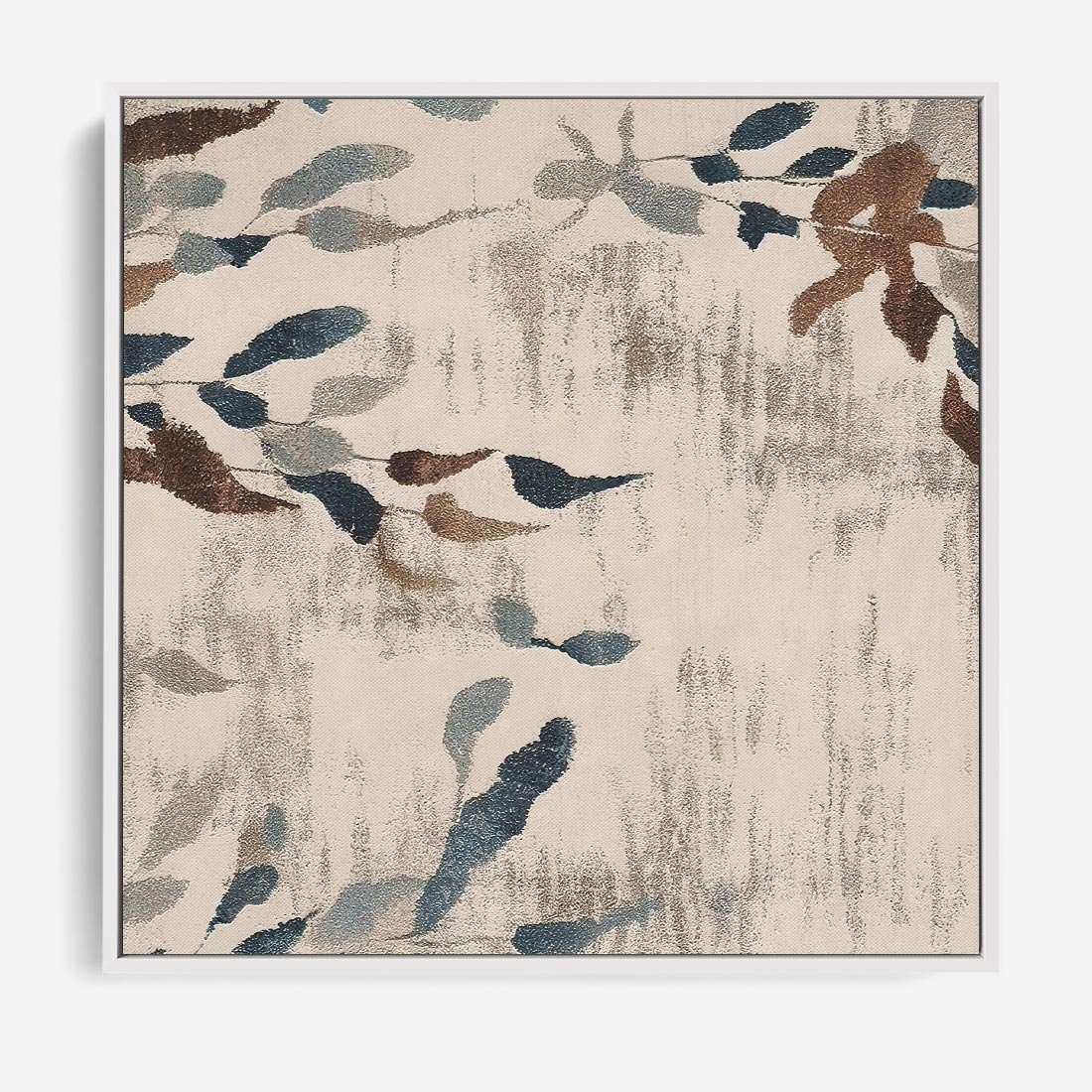 Obraz w ramie 80x80 - Refleksje liściowych barw - abstrakcyjne kształty, przypominają liście - rama biała