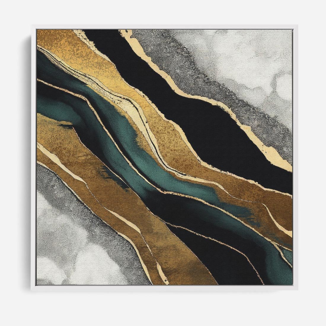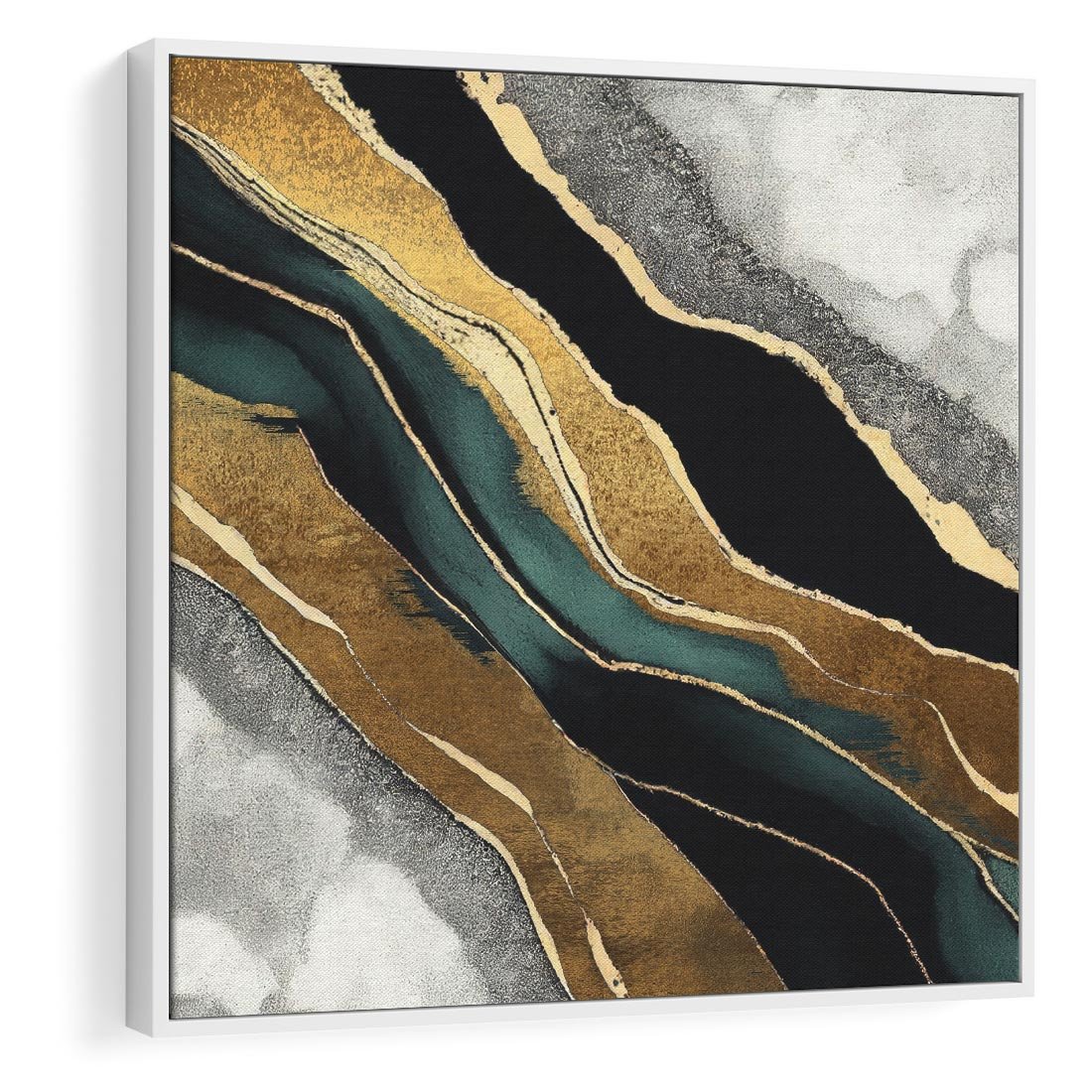 Obraz w ramie 80x80 - Refrakcje płynącej rzeczywistości - jak marmurowa rzeka, linie złota - rama biała