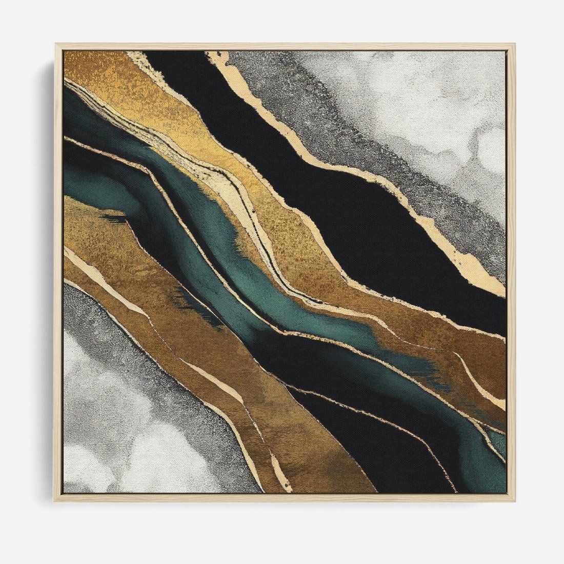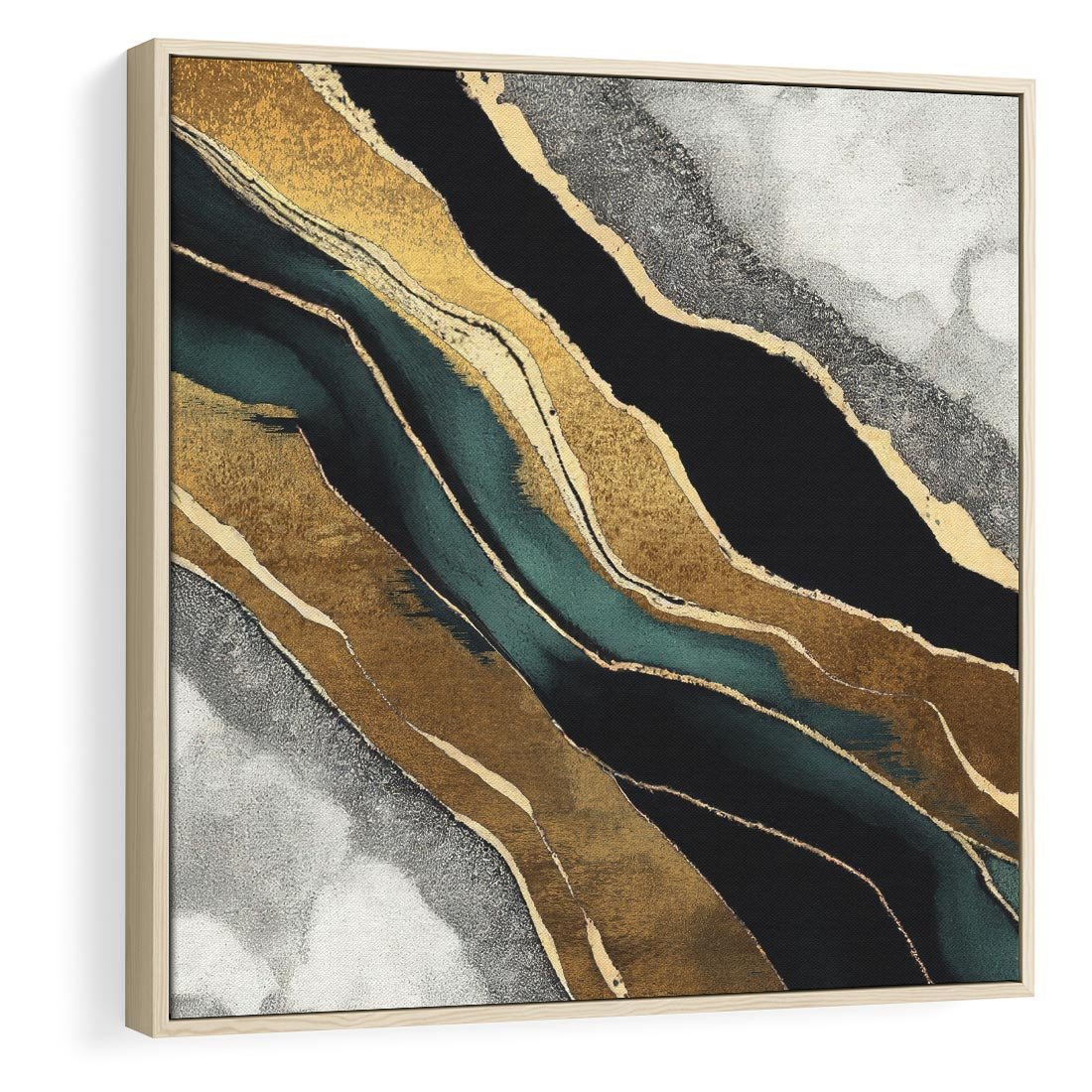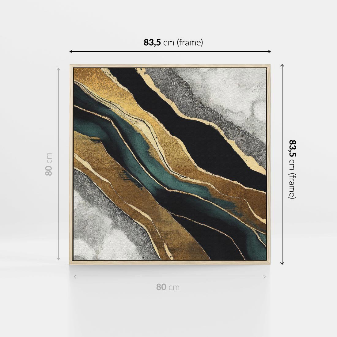 Obraz w ramie 80x80 - Refrakcje płynącej rzeczywistości - jak marmurowa rzeka, linie złota - rama drewno