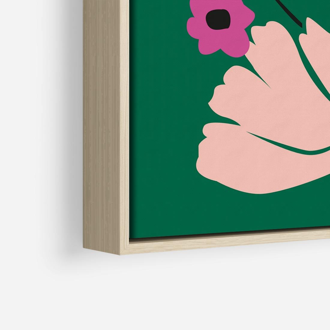 Ten nowoczesny plakat przedstawia abstrakcyjne kwiaty na spokojnym, zielonym tle. Kompozycja ta przynosi do przestrzeni oddech natury w nowatorski i artystyczny sposób, tworząc unikalny punkt centralny w Twoim wnętrzu.