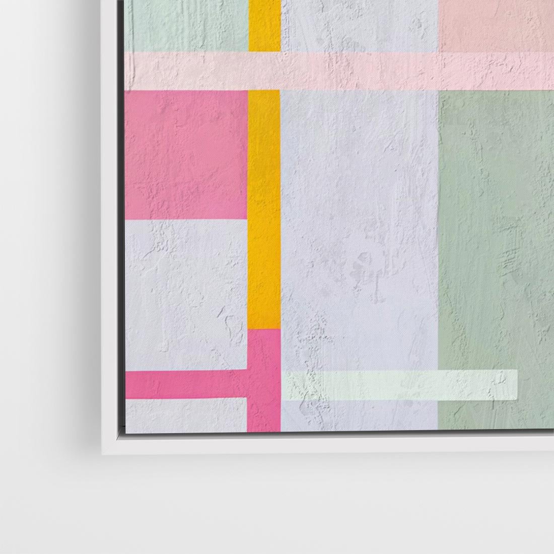 Ten olejny obraz to hipnotyzujące połączenie abstrakcyjnych geometrycznych kształtów, które układają się w harmonijną kompozycję. Delikatne pastelowe kolory nadają mu subtelności i elegancji, tworząc wyjątkowy nastrój. Prostokąty i kwadraty splatają się, tworząc unikalny ruch i dynamikę. To dzieło sztuki zachwyca swoją subtelnością i oryginalnością, idealne do ozdobienia wnętrza w nowoczesnym stylu.