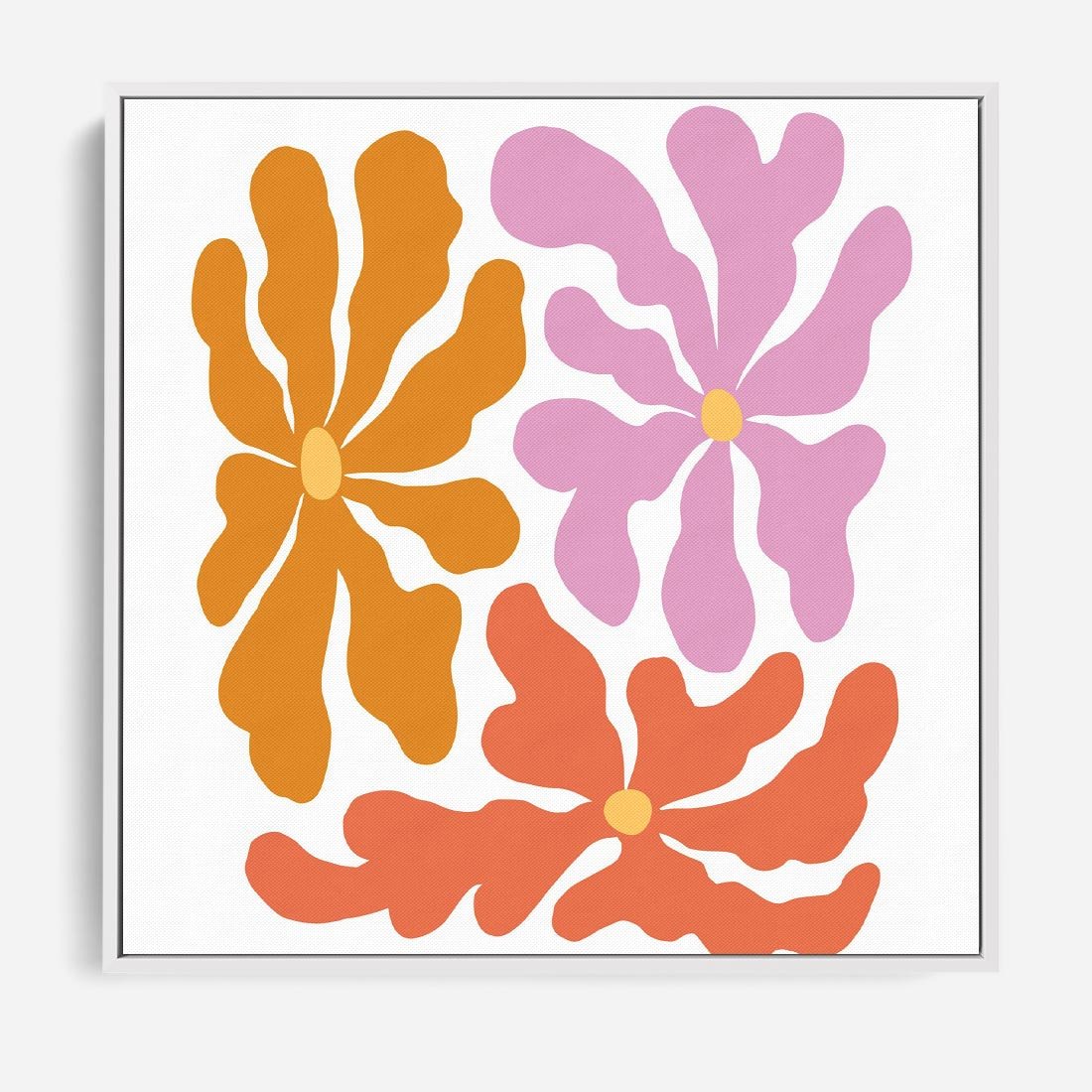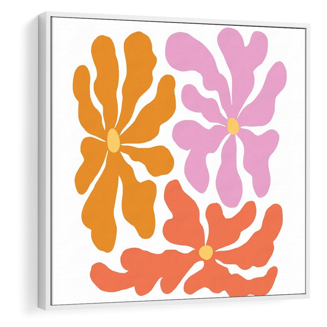 Obraz w ramie 80x80 - Rozbijające Refleksje - abstrakcyjne kolorowe kwiaty, minimlizm - rama biała