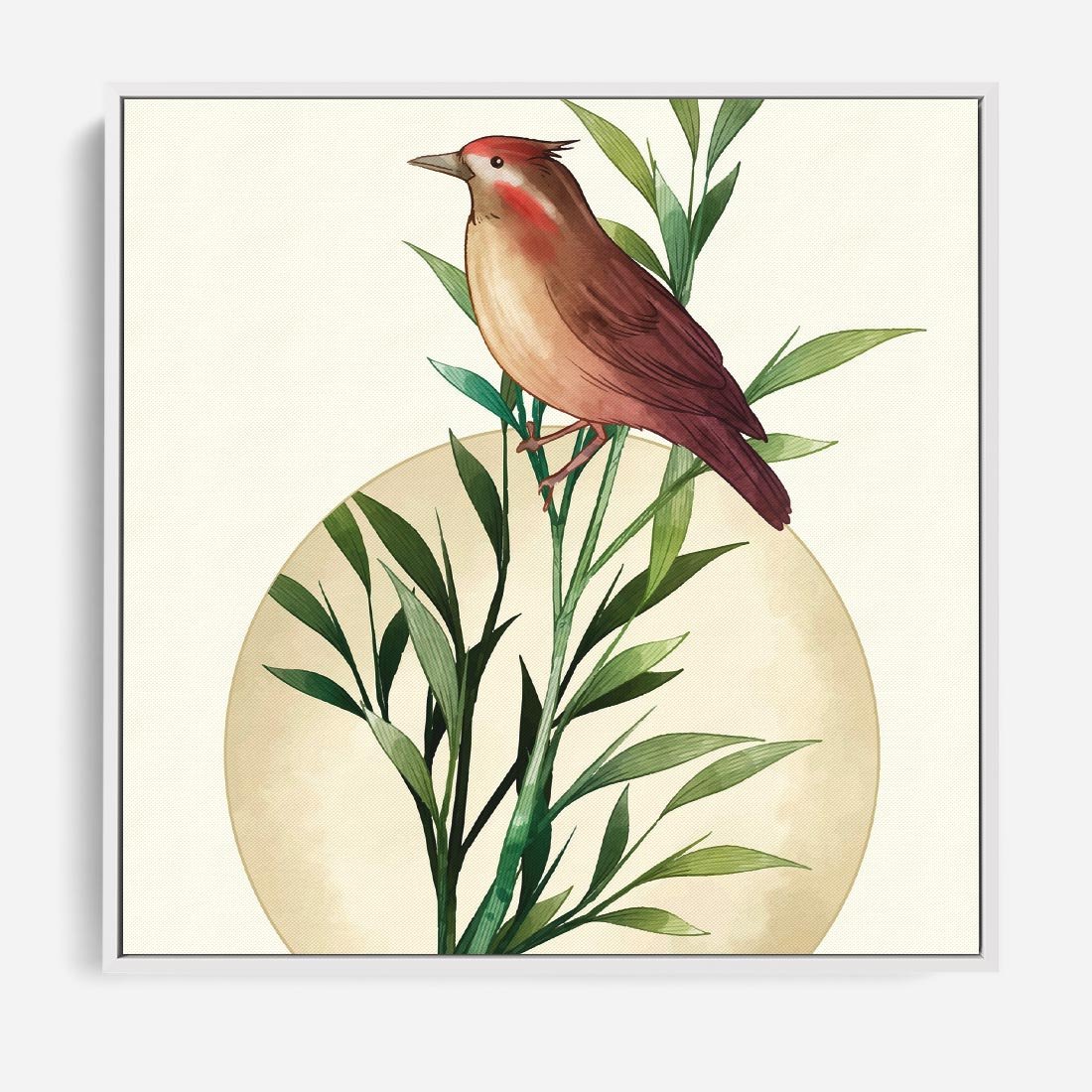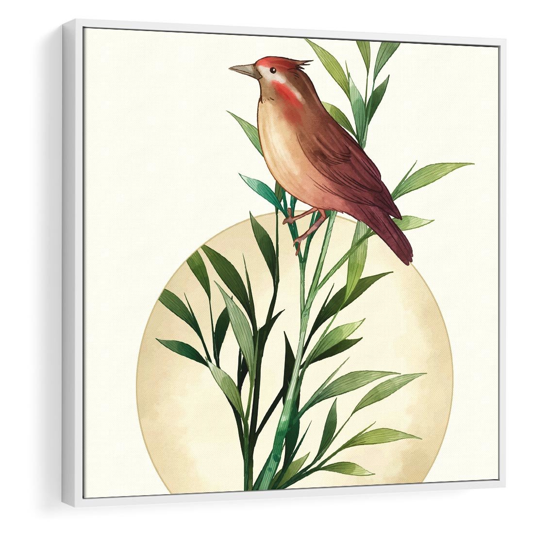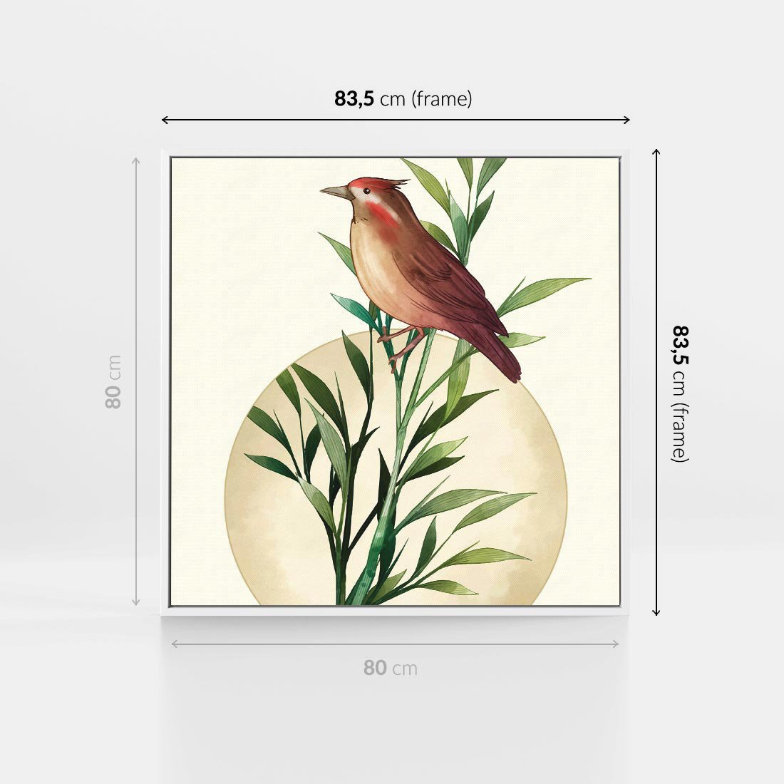 Obraz w ramie 80x80 - Rozkwitająca Delikatność - japońska sztuka, ptak - rama biała
