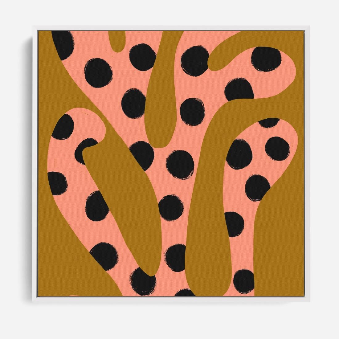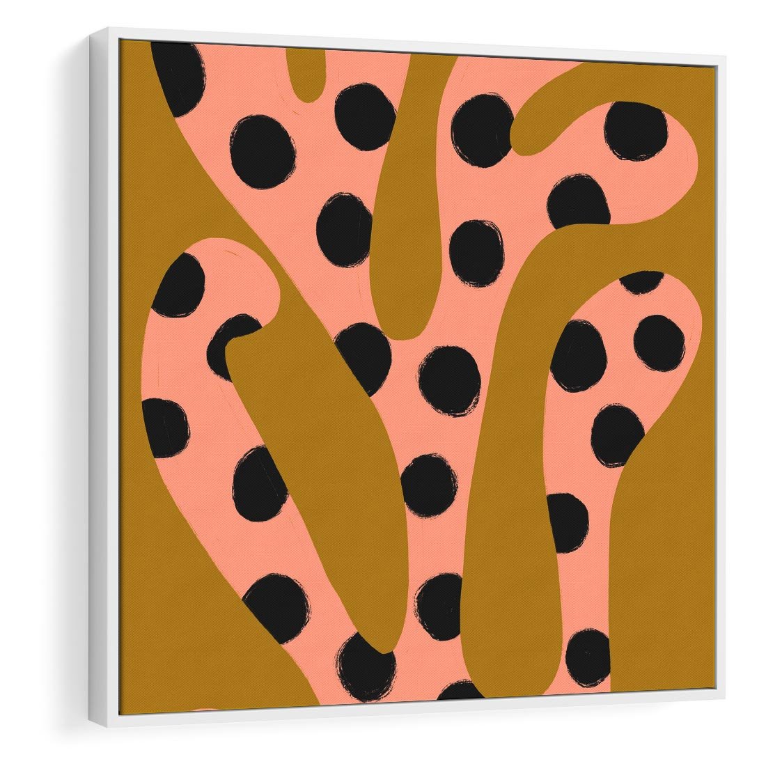 To abstrakcyjne dzieło sztuki w stylu boho zachwyca nietypowymi kształtami, dziwnymi kropkami i ciekawymi ciapkami. Tworzy unikalną kompozycję, która odzwierciedla luźną swobodę charakterystyczną dla tego stylu. Te elementy razem tworzą niezwykłą wizualną opowieść, przenosząc widza w odmienny wymiar ekspresji artystycznej.