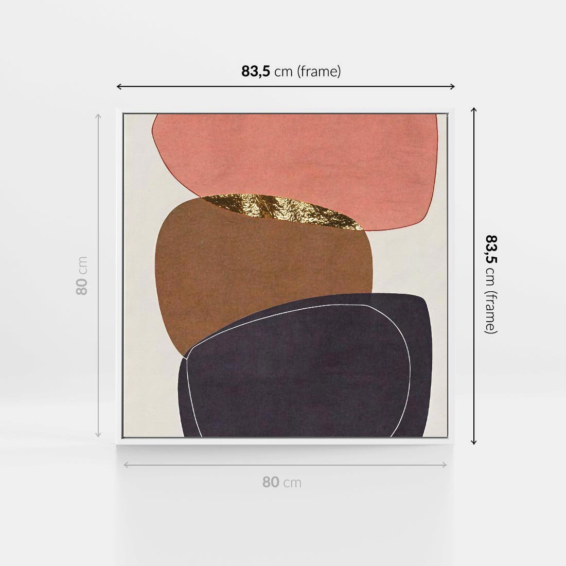 Ten abstrakcyjny obraz zachwyca geometrycznymi formami i subtelnie wplecionymi złotymi elementami. Jego zrównoważona kompozycja łączy się z nowoczesnym stylem, tworząc unikatowe dzieło sztuki, które ożywi każde wnętrze.