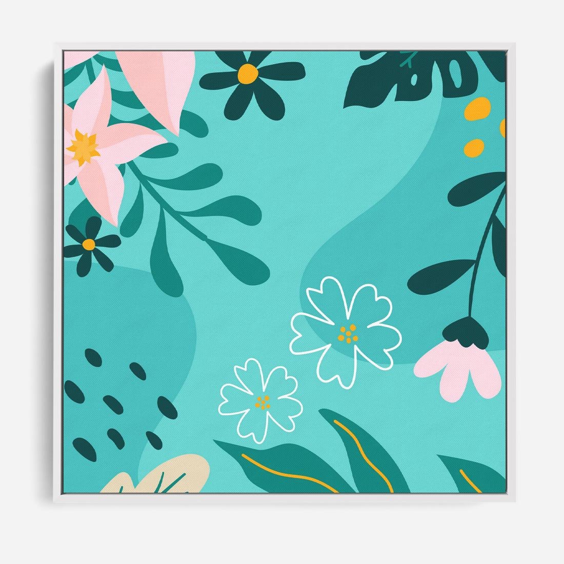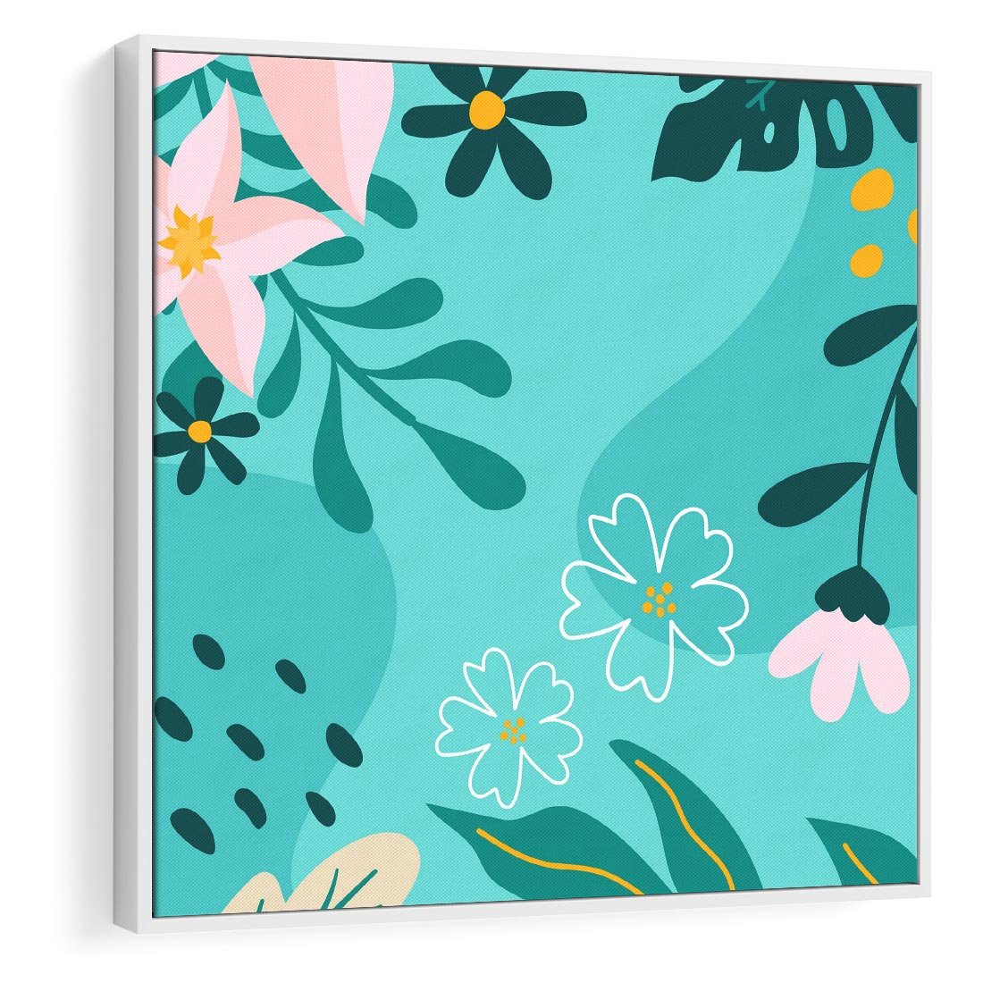 Obraz w ramie 80x80 - Rozkwitające Widoki - pastelowa kompozycja, kwiaty - rama biała