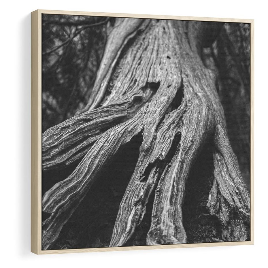 Obraz w ramie 80x80 - Siła Natury - czarno biała fotografia, korzenie wielkiego drzewa - rama drewno