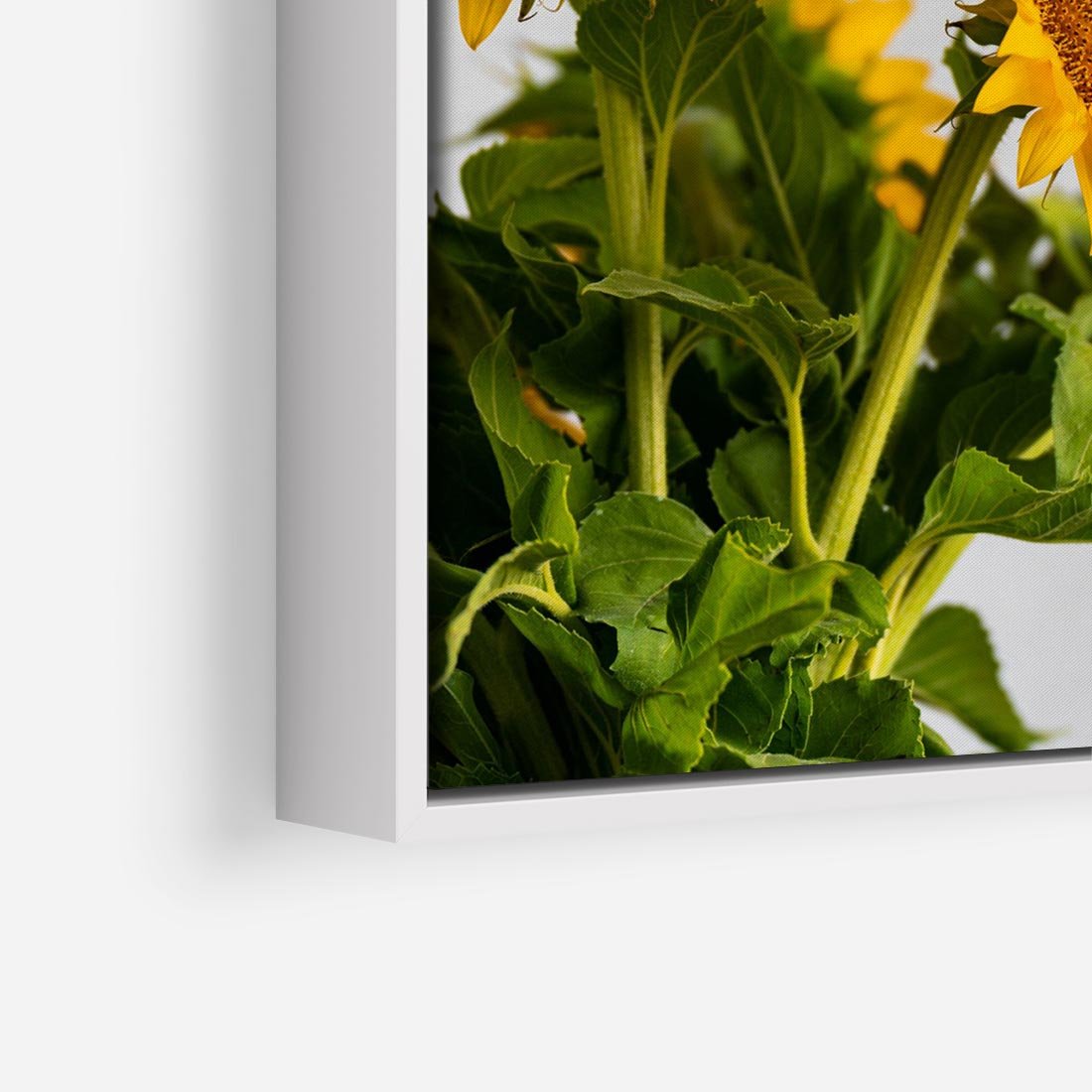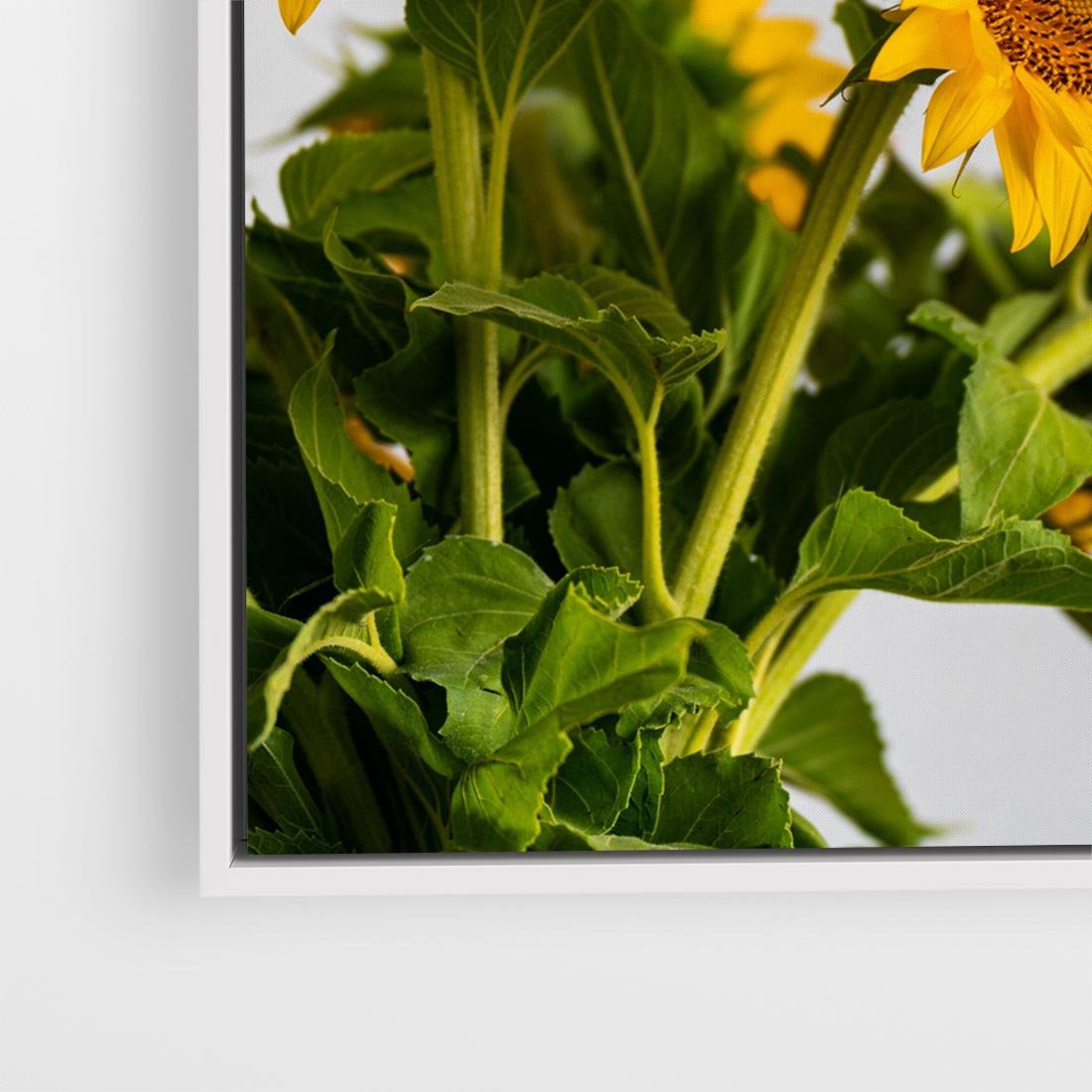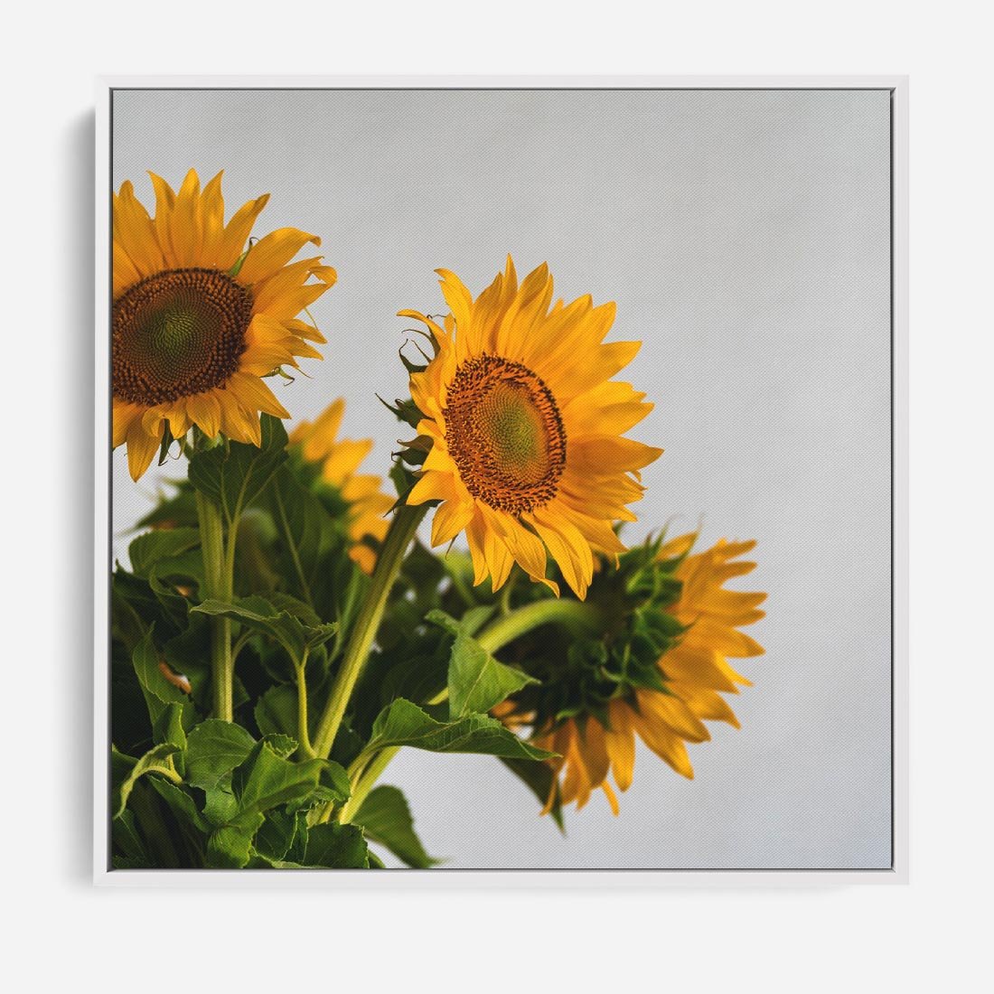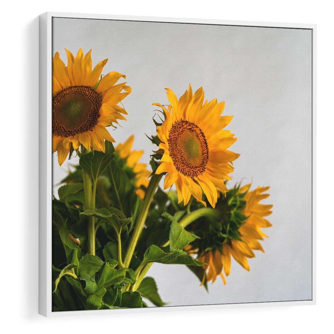Obraz w ramie 80x80 - Słoneczna Radość - fotografia, żółte słoneczniki - rama biała
