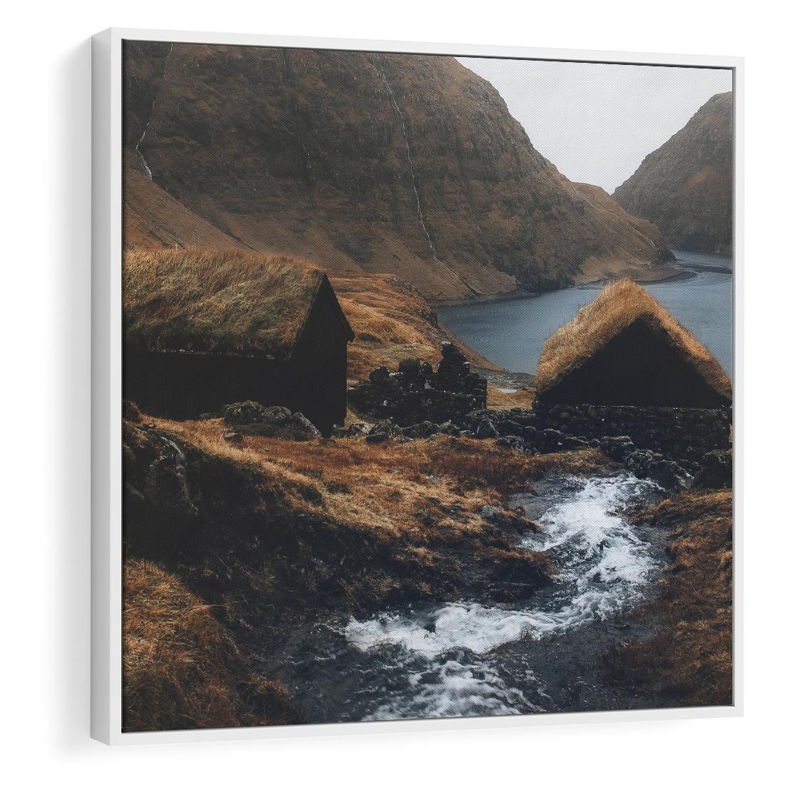 Obraz w ramie 80x80 - Spokój Natury - skandynawski, pejzaż - rama biała