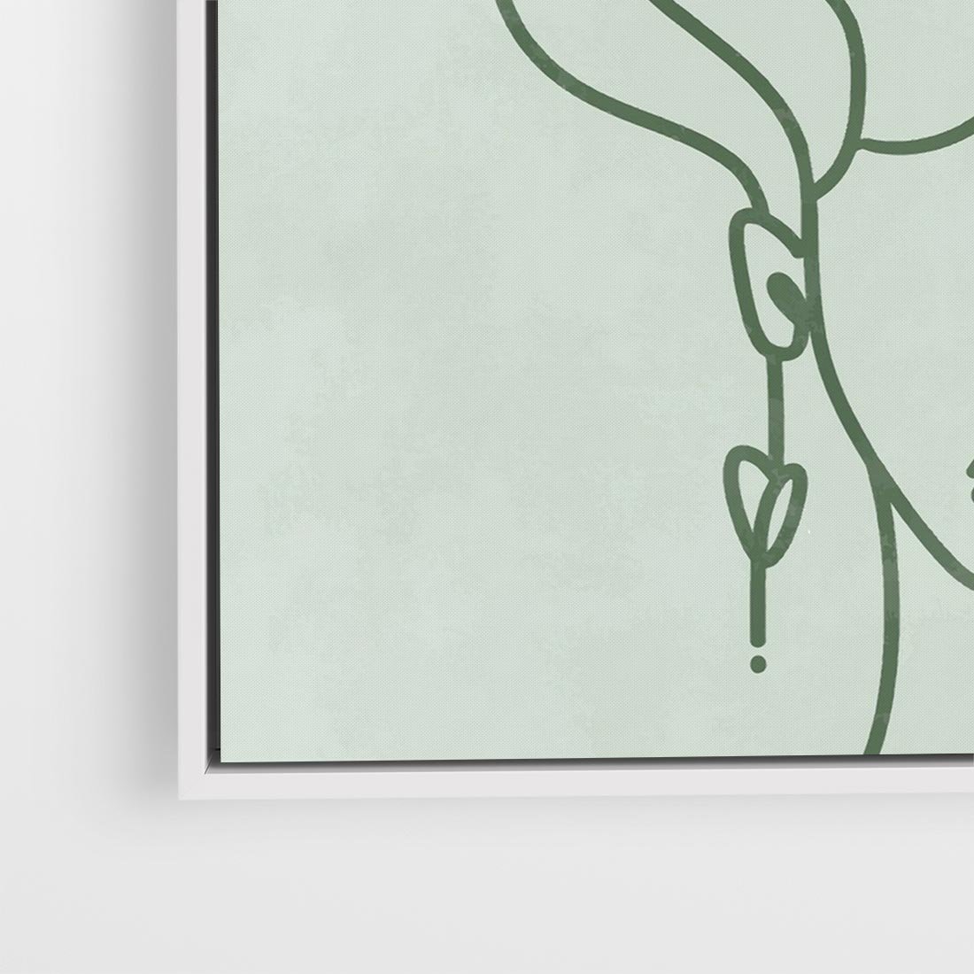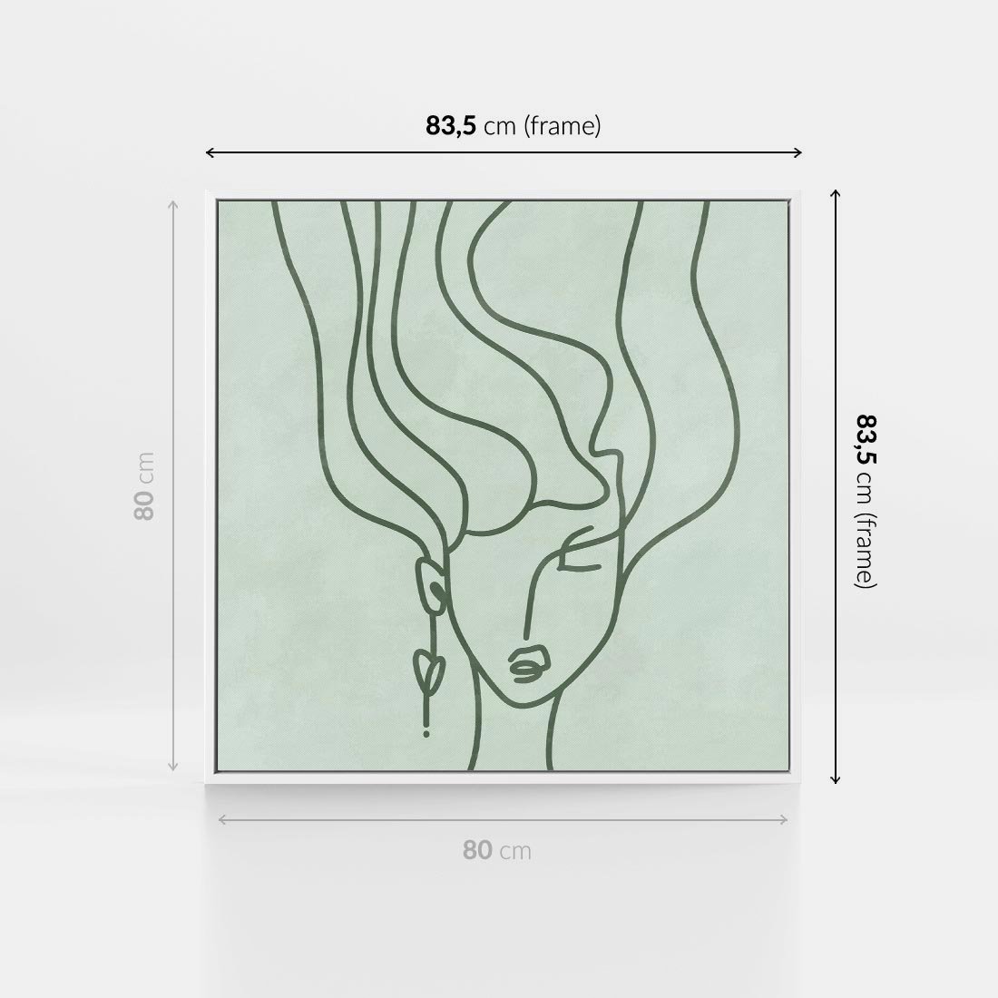 Abstrakcyjny zielony szkic ukazujący kobietę z długimi włosami tworzy wyjątkowy wizualny efekt. Delikatność zielonych linii nadaje kompozycji harmonii, a jednocześnie zachowuje abstrakcyjny charakter, co może ciekawie uzupełnić różne rodzaje wnętrz.