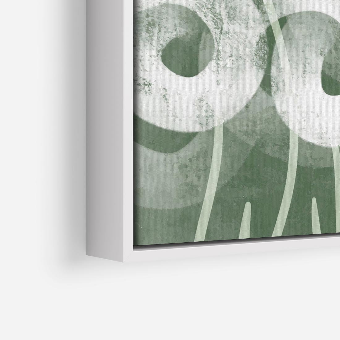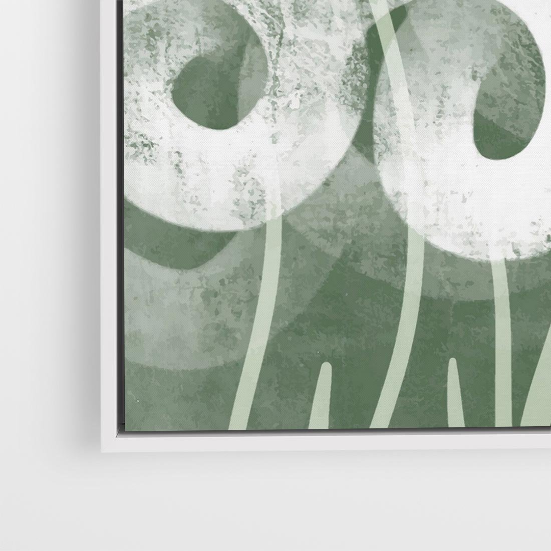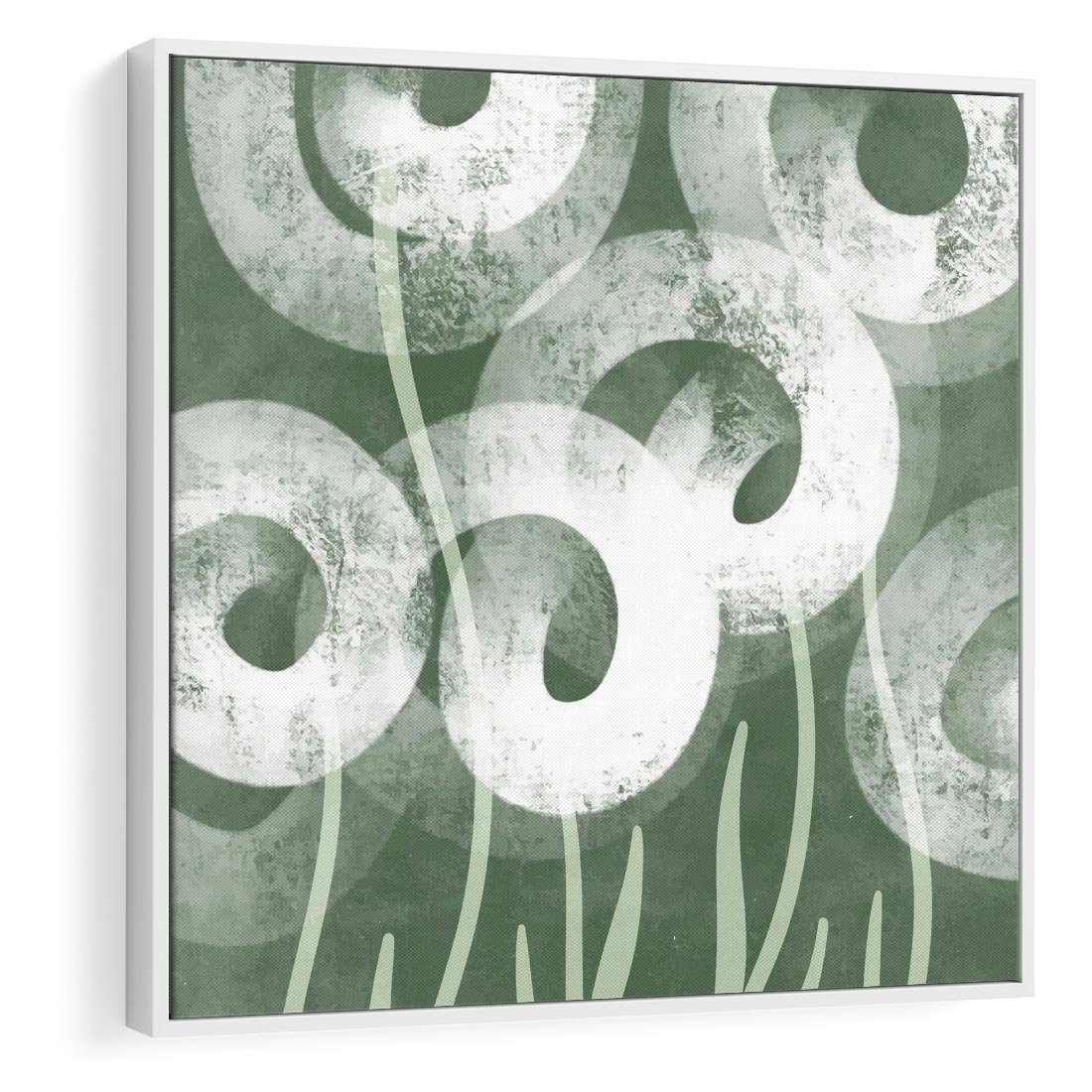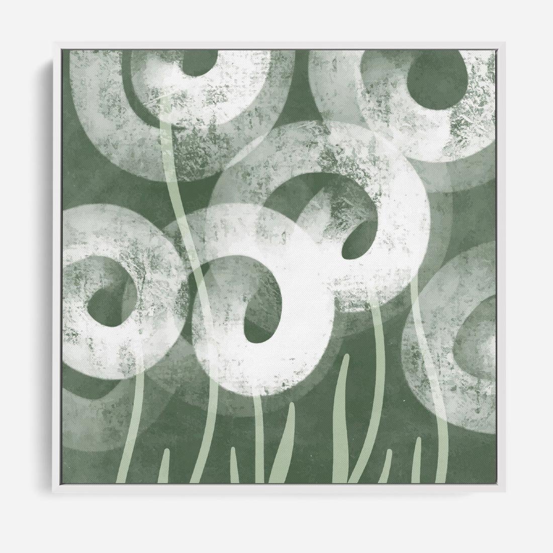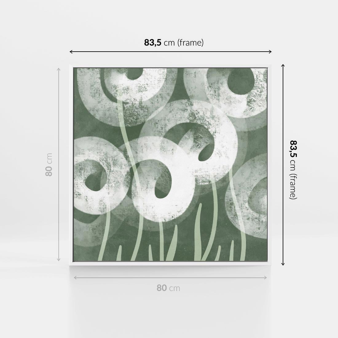 Obraz w ramie 80x80 - Spokojne Plamy Natury - zielony plakat, roślinne motywy - rama biała