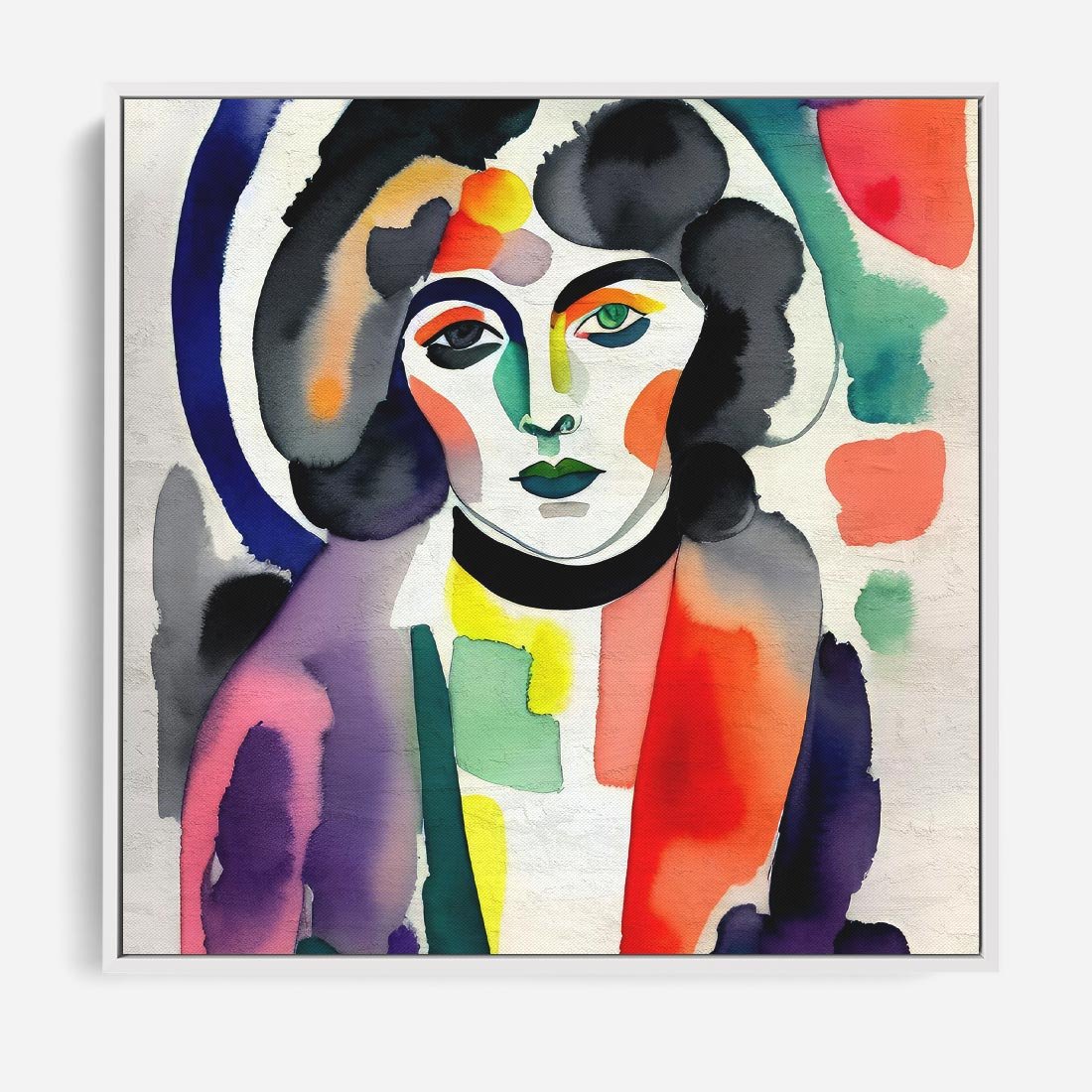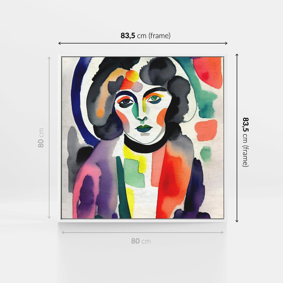 Obraz w ramie 80x80 - Subtelne Akwarelowe Ulotności - abstrakcyjny akwarelowy portret kobiety, rozmyte farby - rama biała