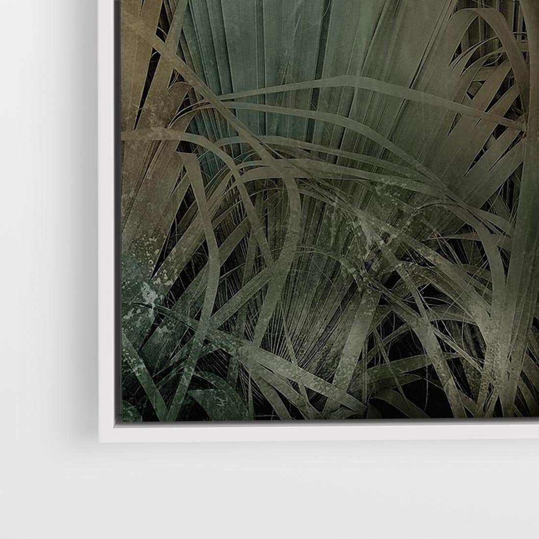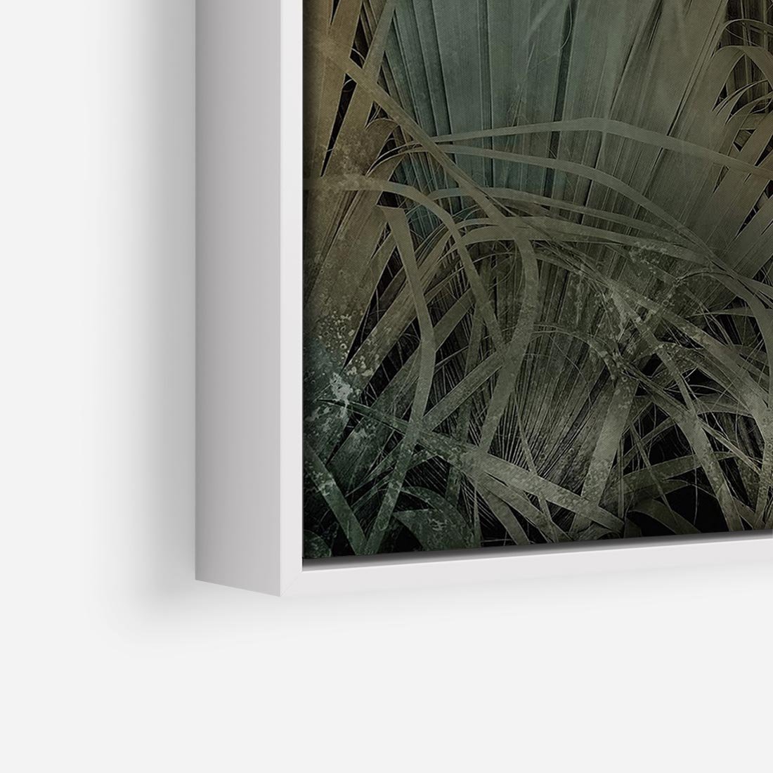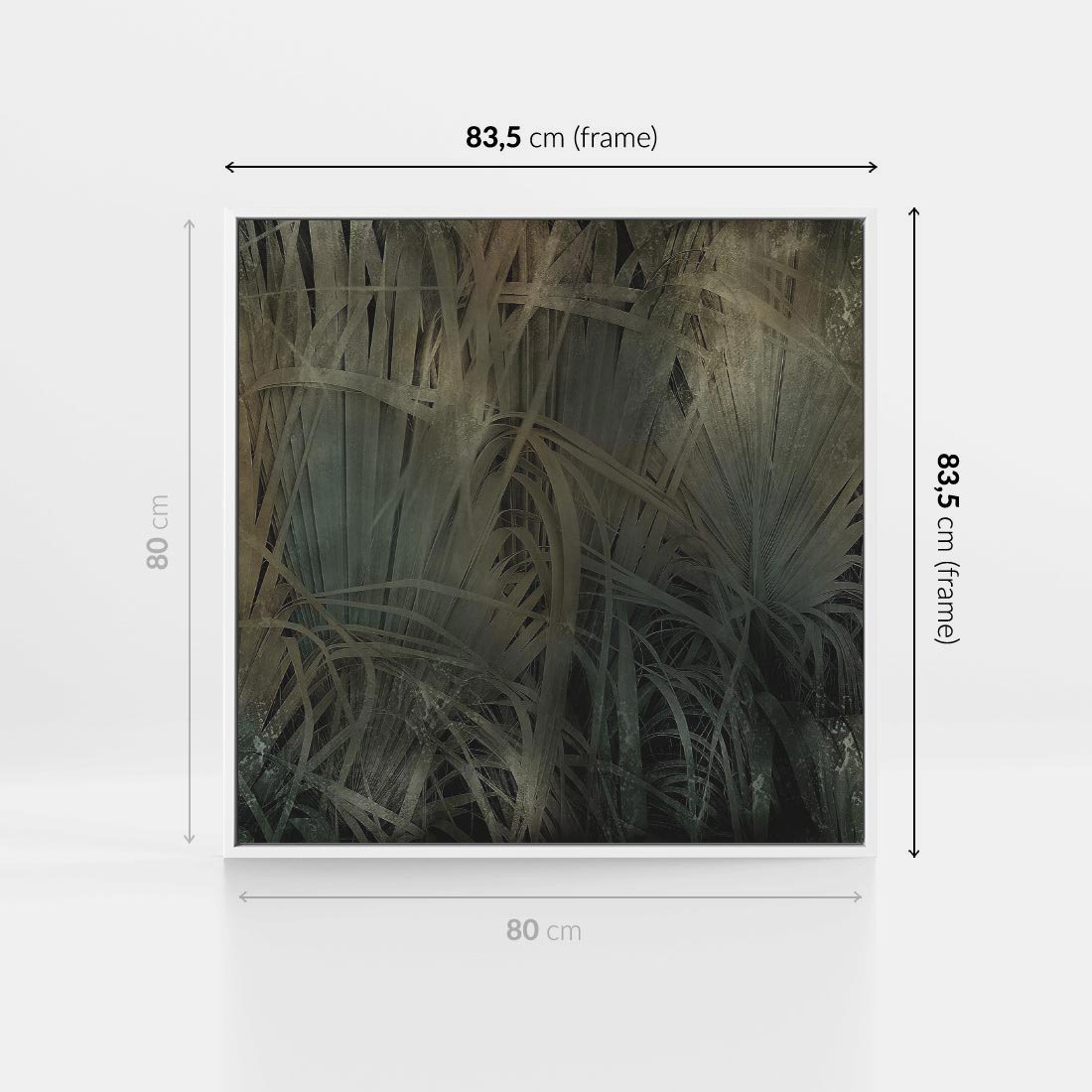 Obraz w ramie 80x80 - Światło w mroku duszy - liście traw, mroczny klimat - rama biała