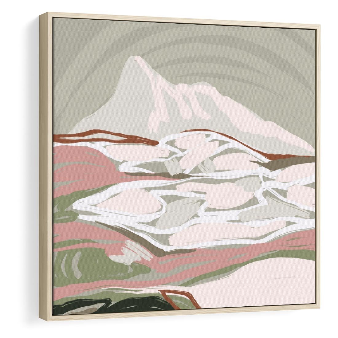 Obraz w ramie 80x80 - Szarawe Wzgórza - pastelowy krajobraz, nowoczesny plakat - rama drewno