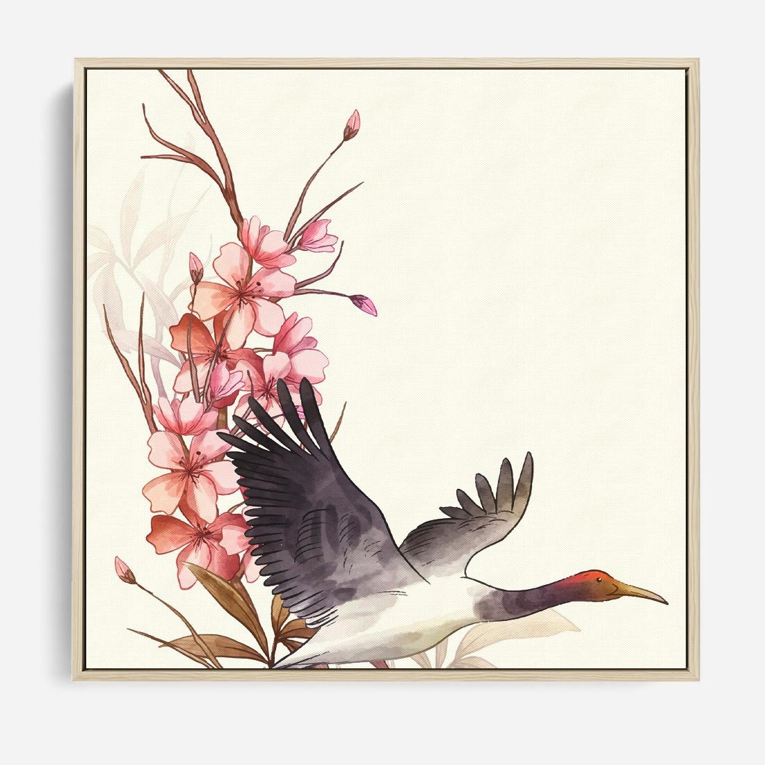 Obraz w ramie 80x80 - Szept Japonii - japońska sztuka, ptak - rama drewno