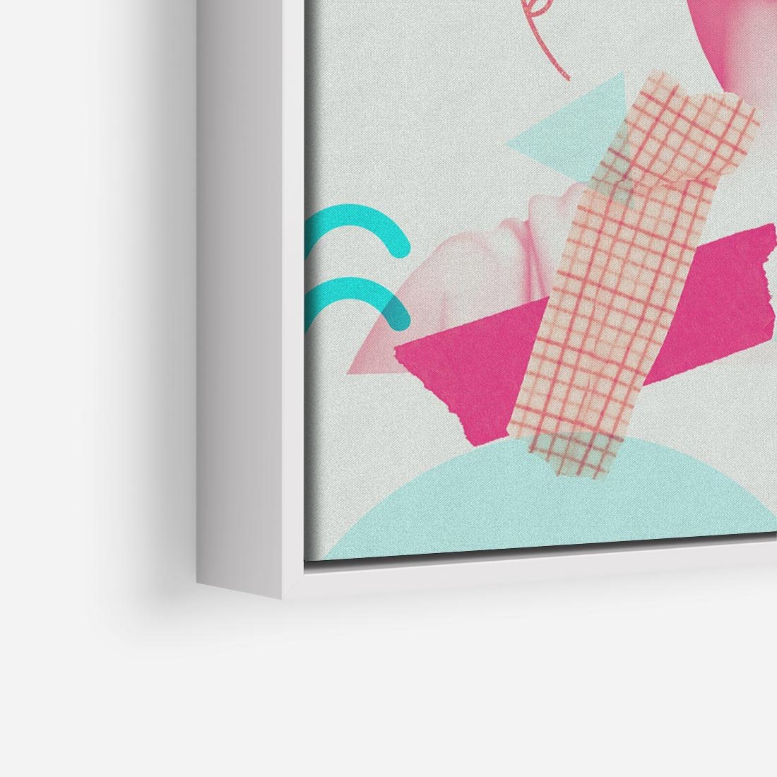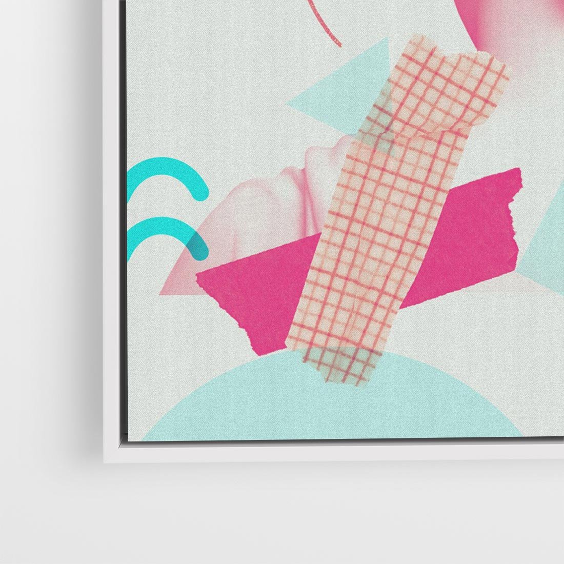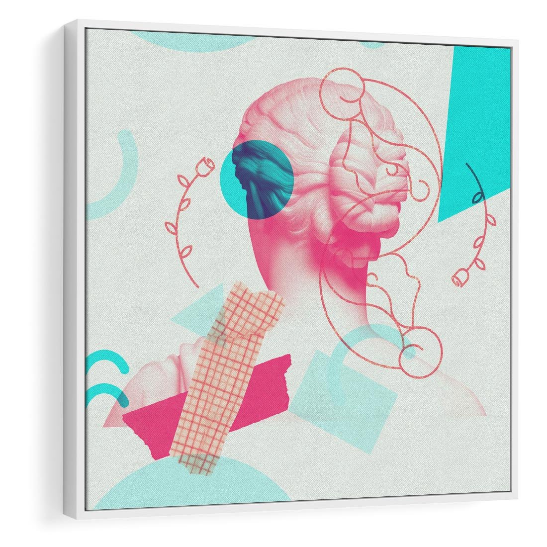 Ten nowoczesny kolaż łączy antyczną rzeźbę kobiety z elementami sztuki współczesnej. W delikatnych odcieniach różowego ukazuje piękno ludzkiej formy, przenosząc je w nowoczesny kontekst. To unikalne dzieło sztuki przyciąga wzrok i inspiruje do refleksji nad pięknem i ewolucją sztuki przez wieki.