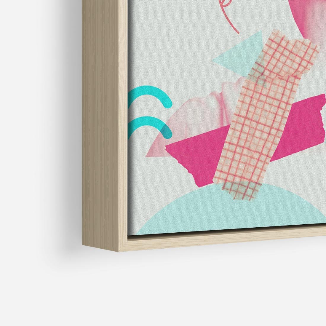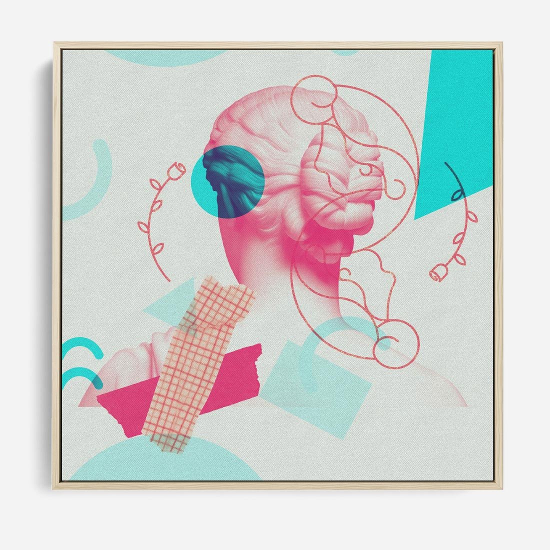 Ten nowoczesny kolaż łączy antyczną rzeźbę kobiety z elementami sztuki współczesnej. W delikatnych odcieniach różowego ukazuje piękno ludzkiej formy, przenosząc je w nowoczesny kontekst. To unikalne dzieło sztuki przyciąga wzrok i inspiruje do refleksji nad pięknem i ewolucją sztuki przez wieki.