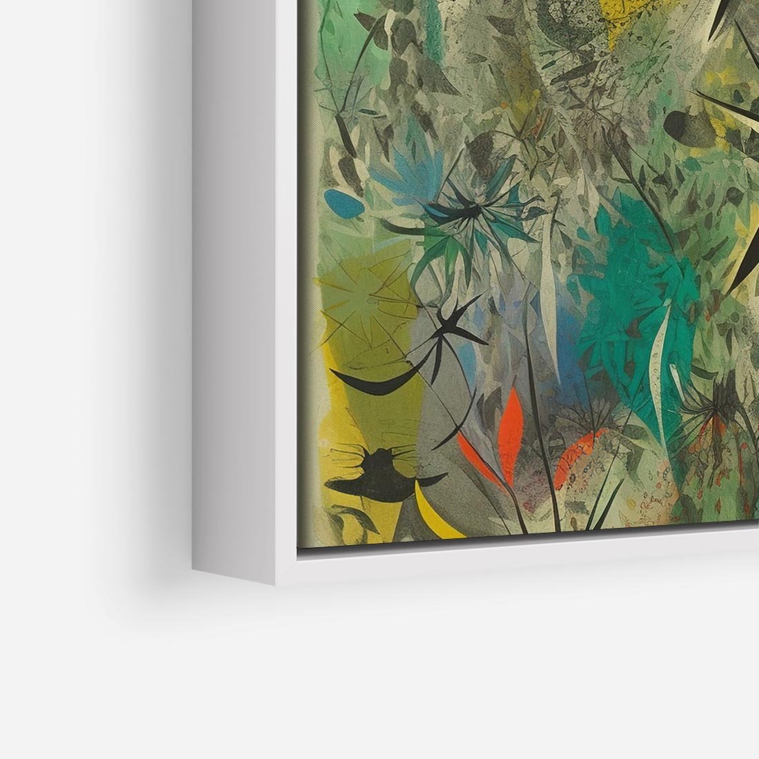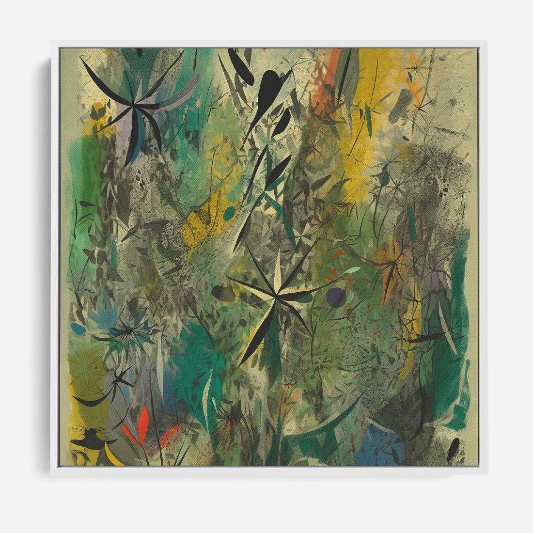 Ten abstrakcyjny obraz to prawdziwa eksplozja kolorów i małych, zawiłych elementów. Ich kształty tworzą harmonijną całość, wzbogaconą o roślinne motywy. Ciekawa i intrygująca kompozycja przyciąga uwagę i inspiruje do refleksji.