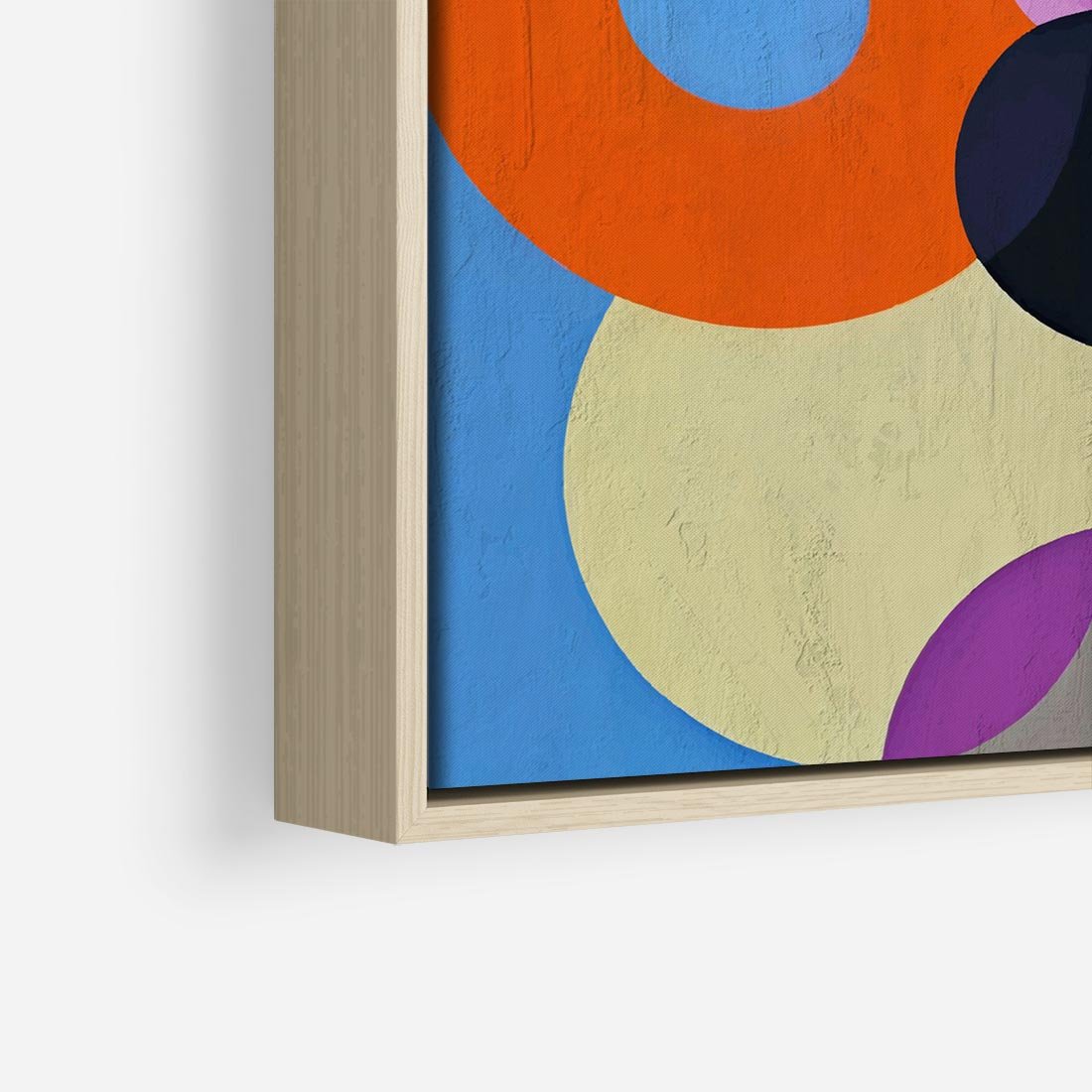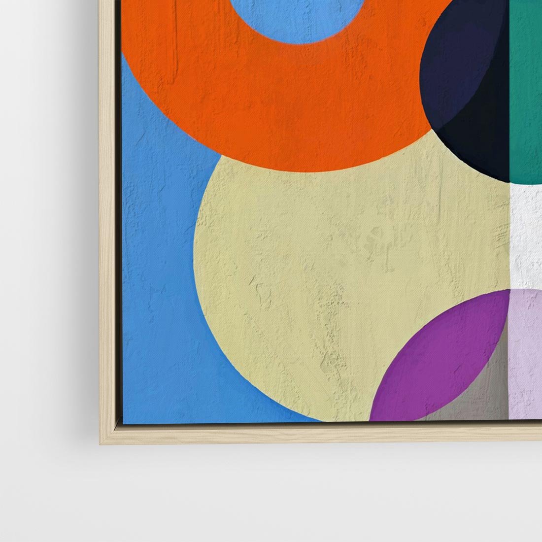 Ten olejny obraz to prawdziwa uczta dla oczu, dzięki abstrakcyjnym geometrycznym kształtom w postaci dynamicznych kół. Intensywne, żywe kolory nadają mu energii i głębi, tworząc unikalną kompozycję, która wciąga i zachwyca. To prawdziwa sztuka, która wzbogaci każde wnętrze.