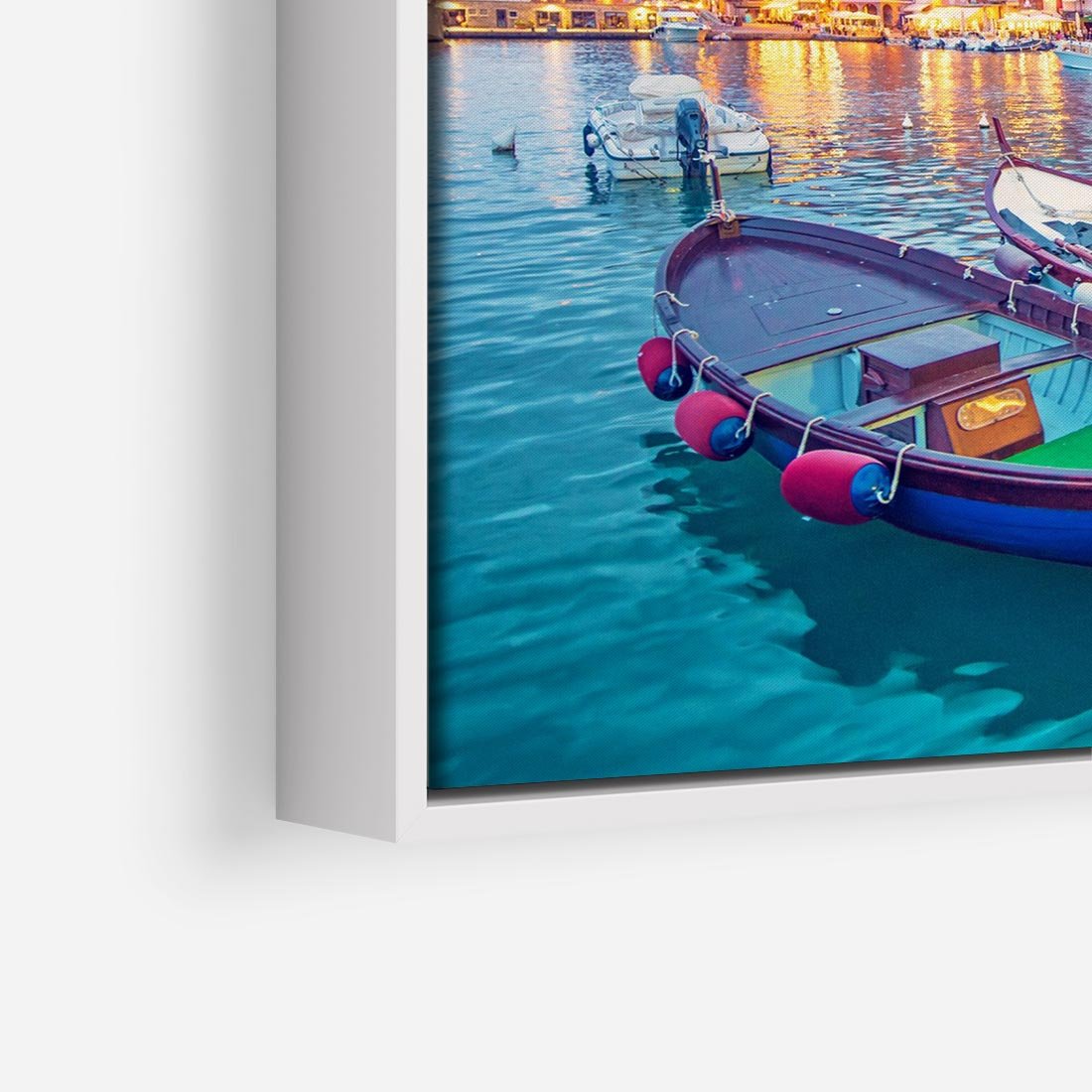 To malowniczy pejzaż przedstawiający nadmorskie miasto ożywione bogatą paletą barw. Budynki w jaskrawych kolorach zdobią brzeg, a port tętni życiem z kolorowymi łodziami. Wieczorne latarnie rozświetlają to idylliczne miejsce, nadając mu romantyczny nastrój. Ten obraz przenosi widza w magiczny krajobraz pełen kolorów i uroku nadmorskiego miasteczka. Idealny dla miłośników podróży i pięknych widoków.