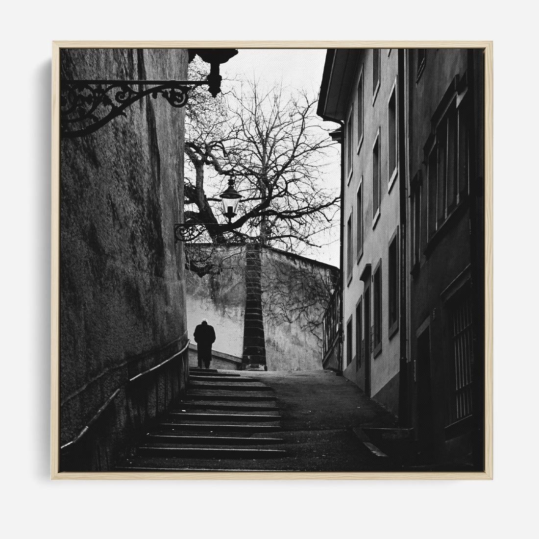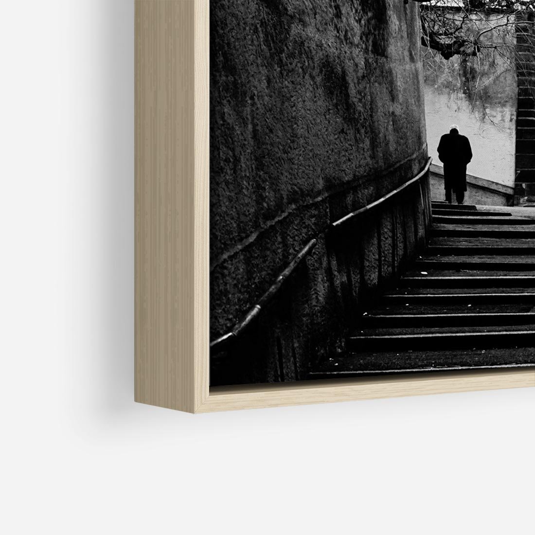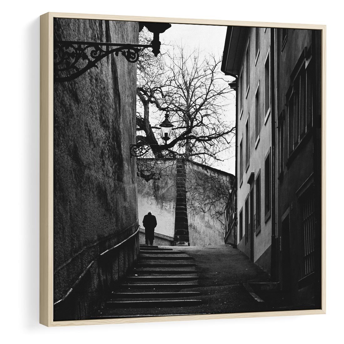 Obraz w ramie 80x80 - Ukryta Uliczka - czarno białe zdjęcie, schody - rama drewno