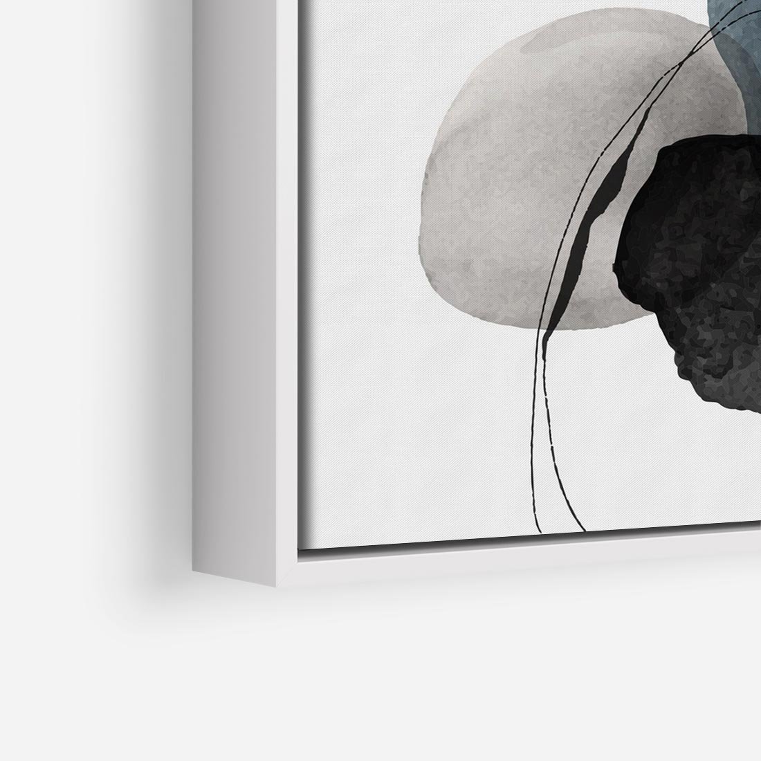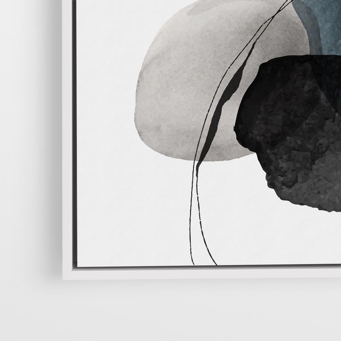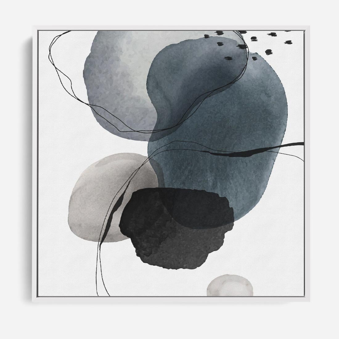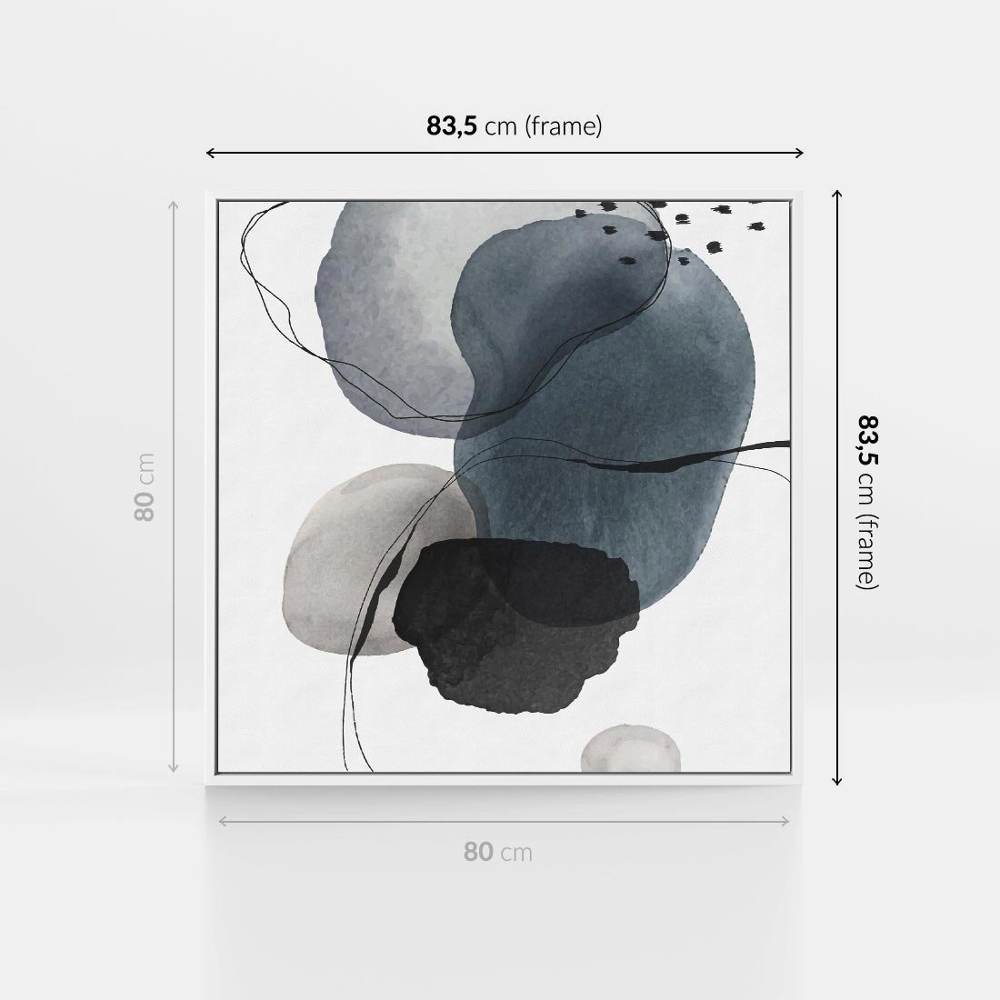 Obraz w ramie 80x80 - Wibracje Kształtów - abstrakcyjne plamy akwarelowe, czarny szkic - rama biała