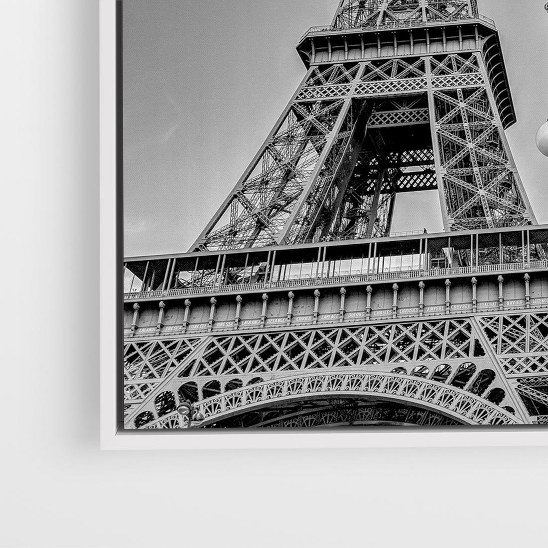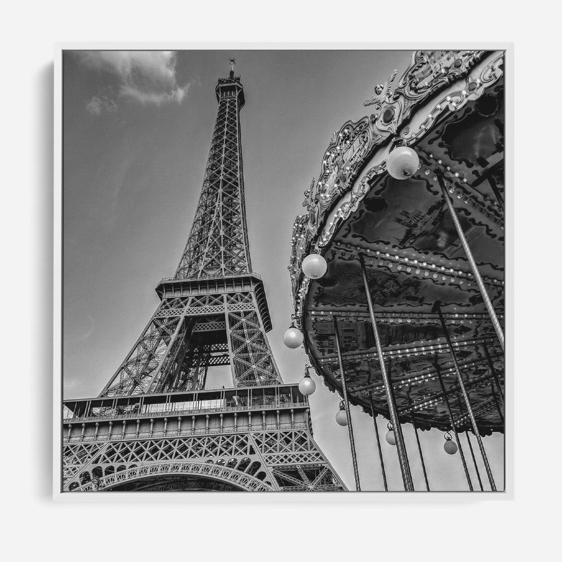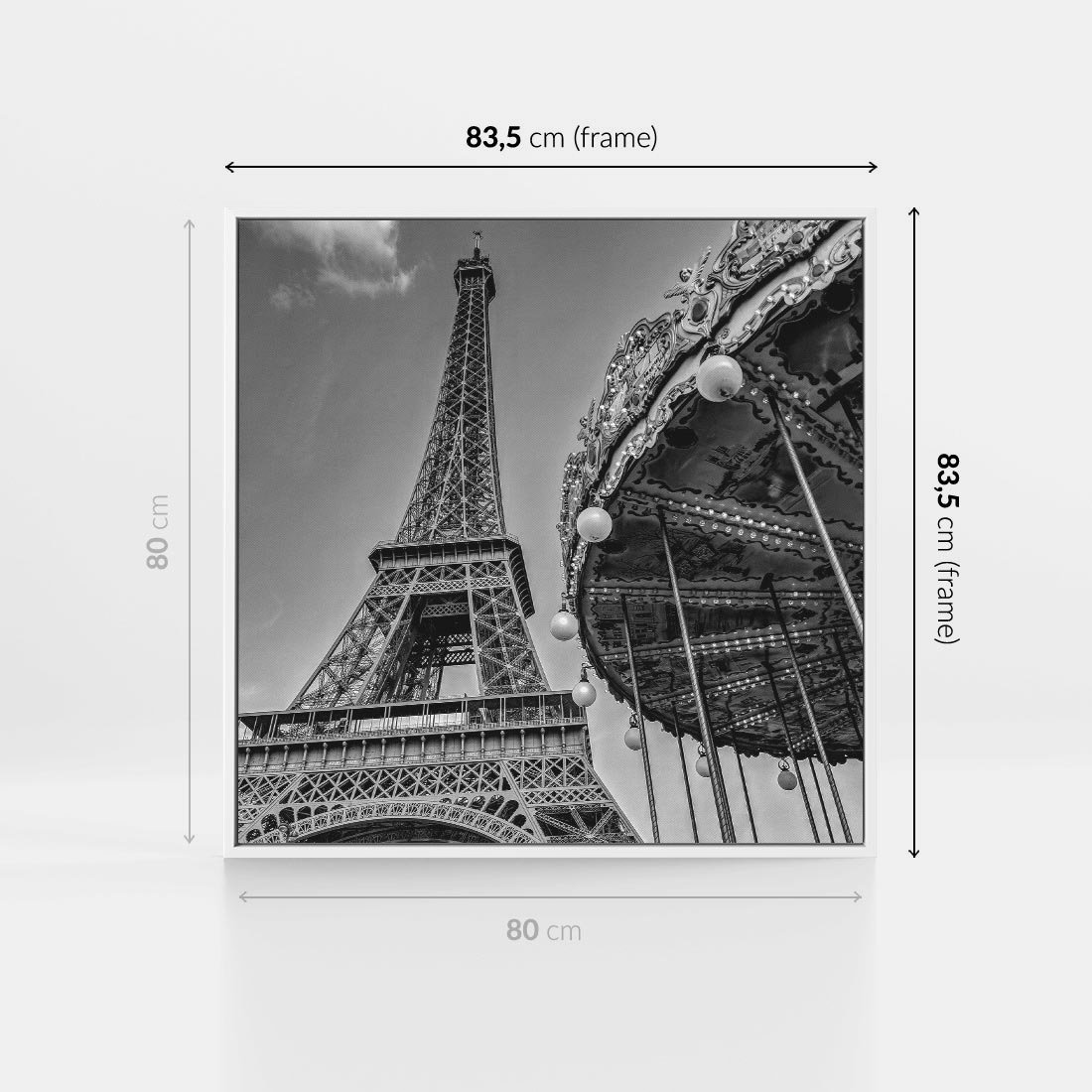 Obraz w ramie 80x80 - Zabawa w Paryżu - czarno białe zdjecie, wieża eiffla - rama biała