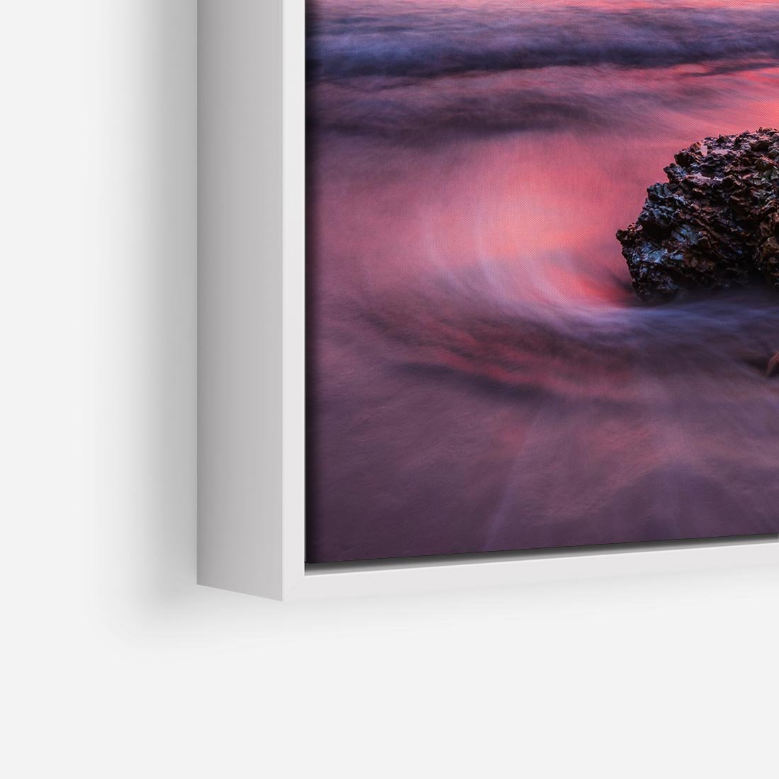 Obraz w ramie 80x80 - Zaklęty Zachód - magiczny zachód słońca, fioletowe - rama biała