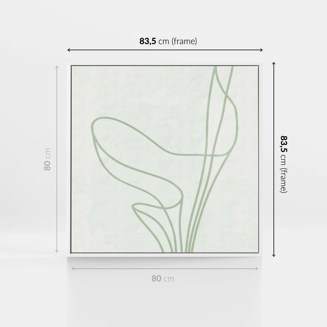 Obraz w ramie 80x80 - Zielona Równowaga Linii - abstrakcyjne delikatne zielone linie, nowoczesny plakat - rama biała