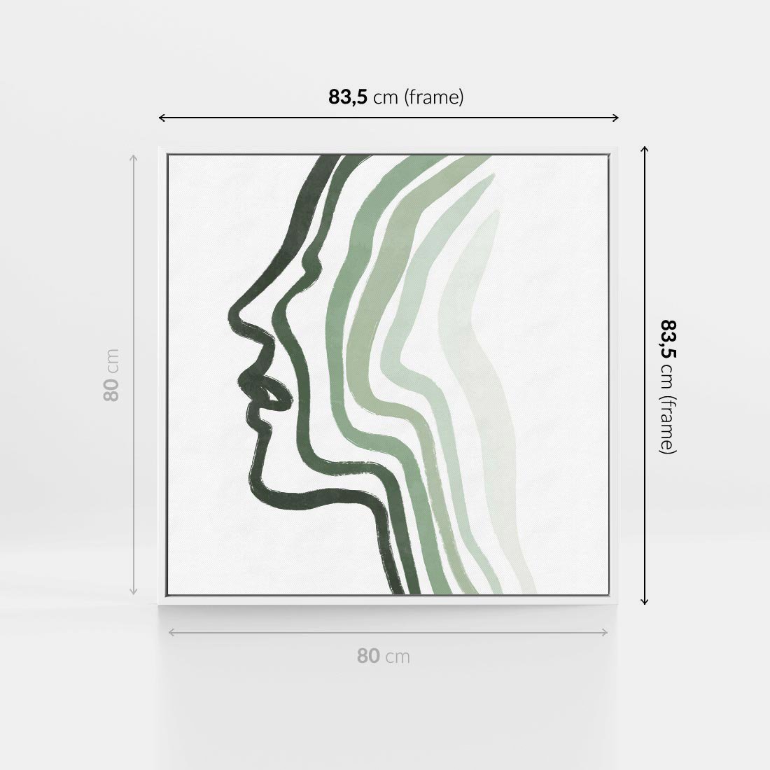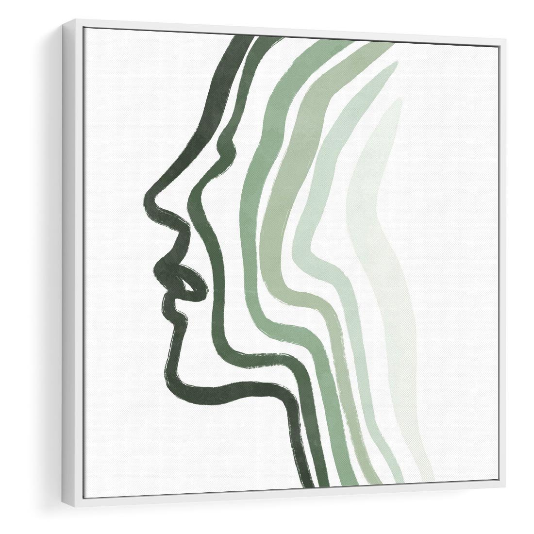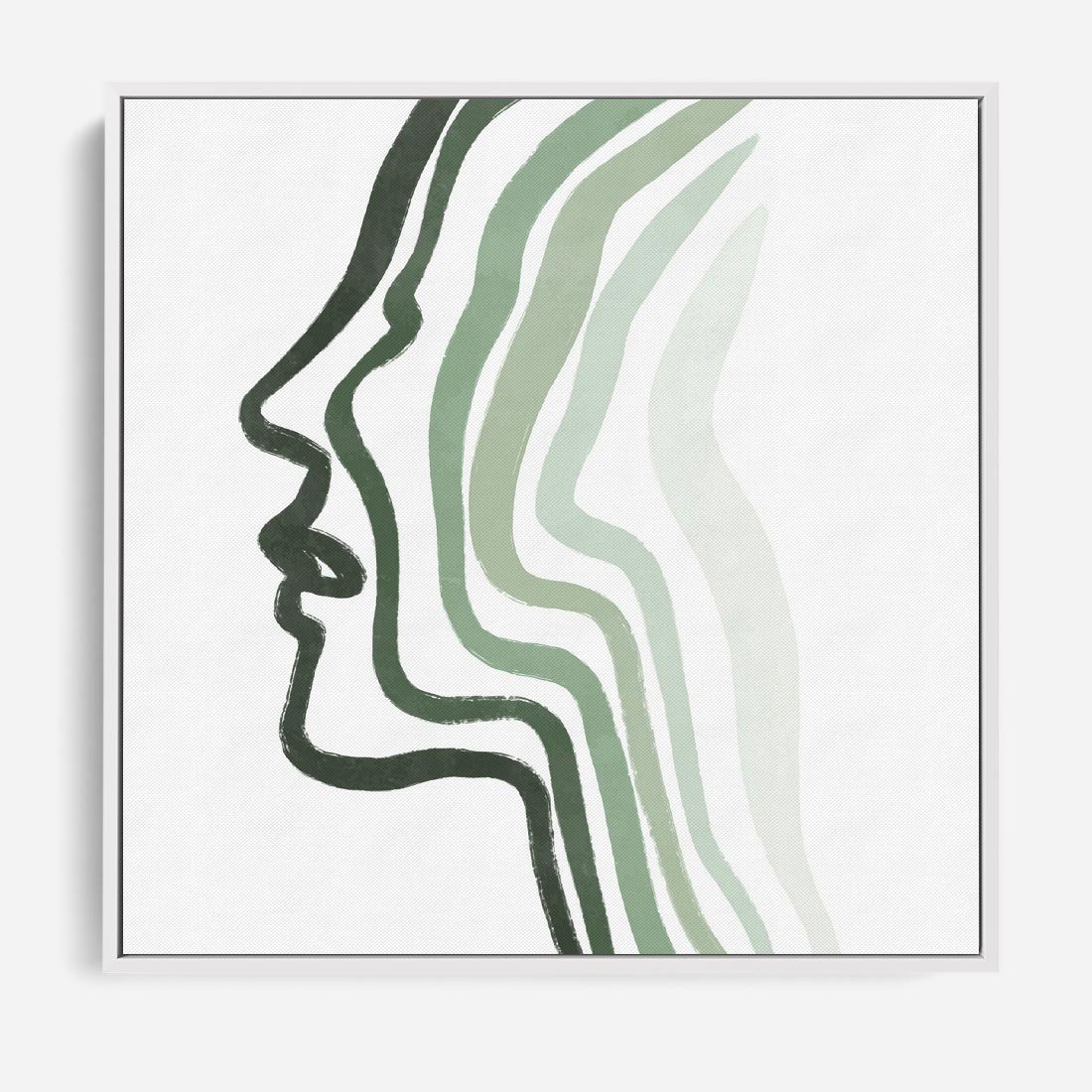 Obraz w ramie 80x80 - Zielony Profil - abstrakcja, zielony portret z profilu - rama biała