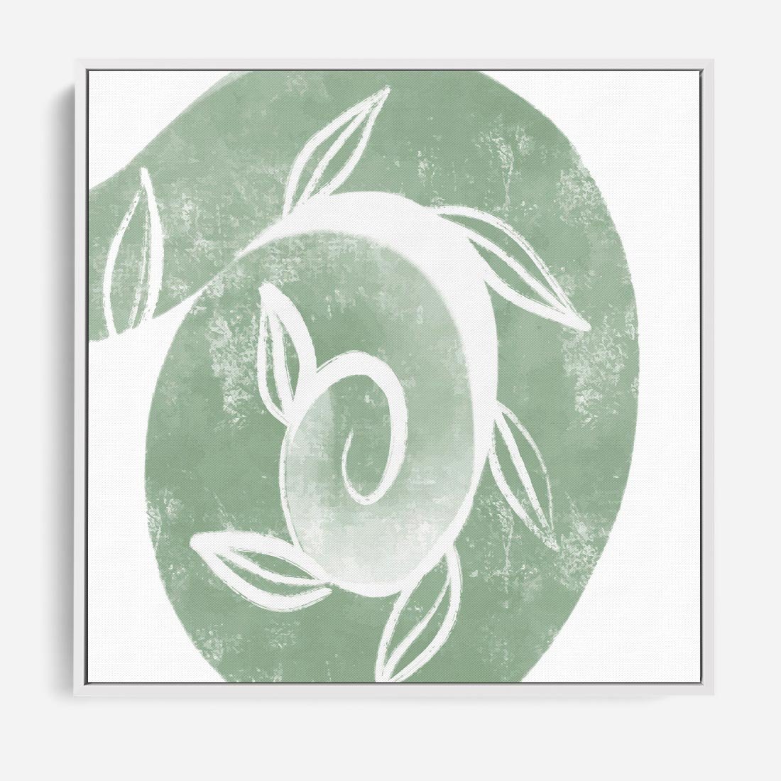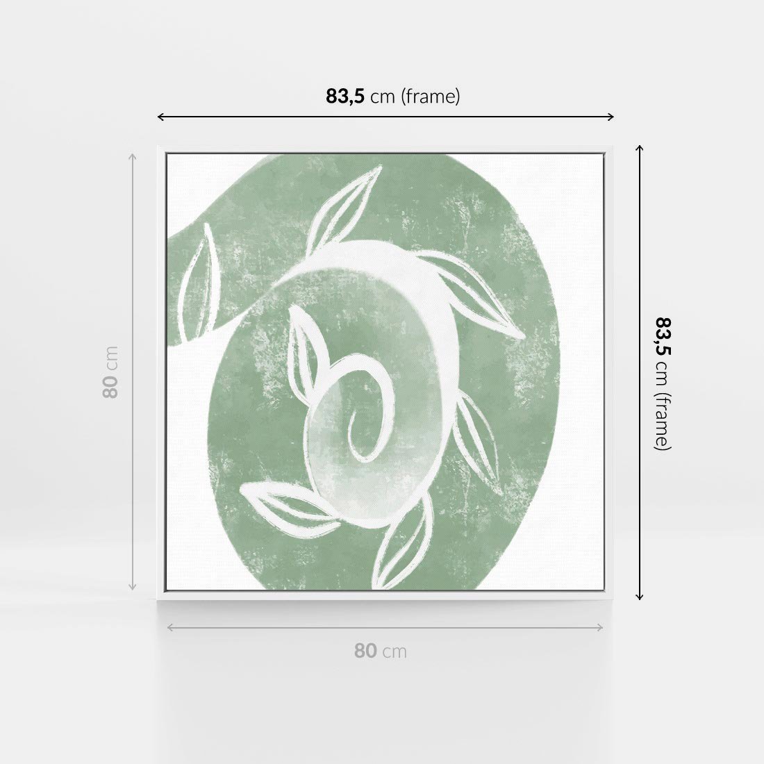 Obraz w ramie 80x80 - Zielony Świat Odpoczynku - abstrakcyjny zielony motyw, skandynawski design - rama biała