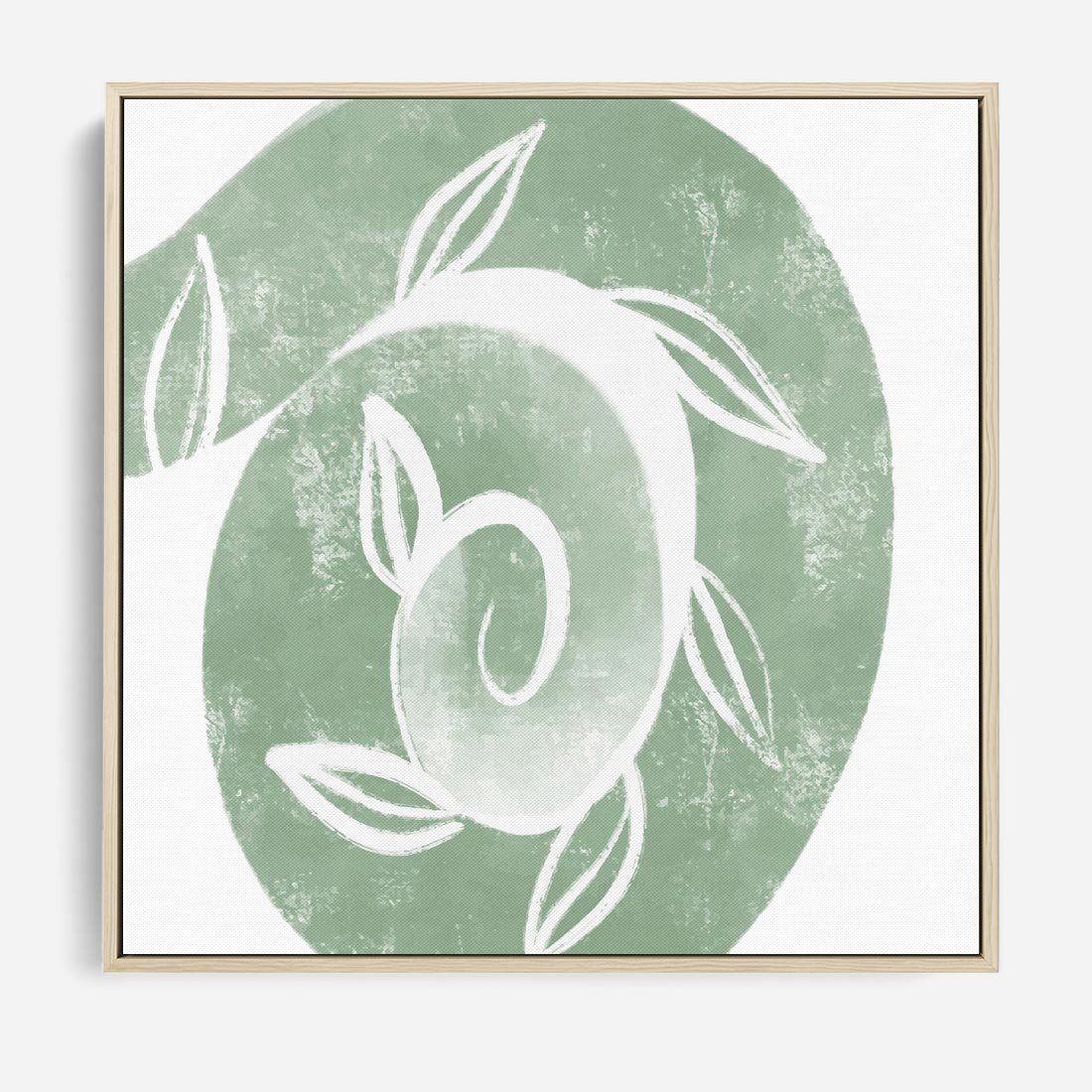 Obraz w ramie 80x80 - Zielony Świat Odpoczynku - abstrakcyjny zielony motyw, skandynawski design - rama drewno