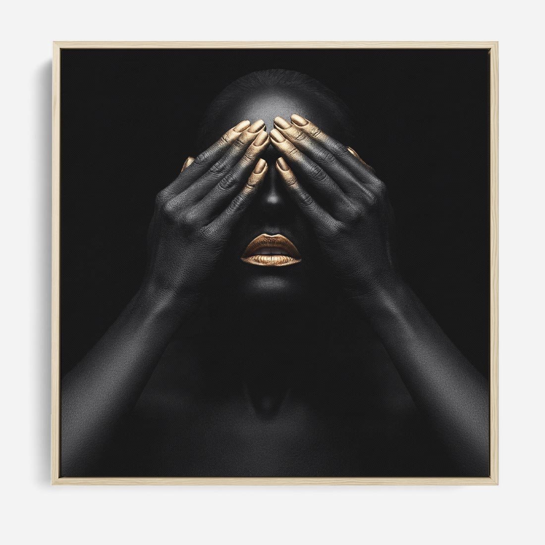 Obraz w ramie 80x80 - Złote Usta wyjątkowa subtelność - złote usta, złote palce - rama drewno