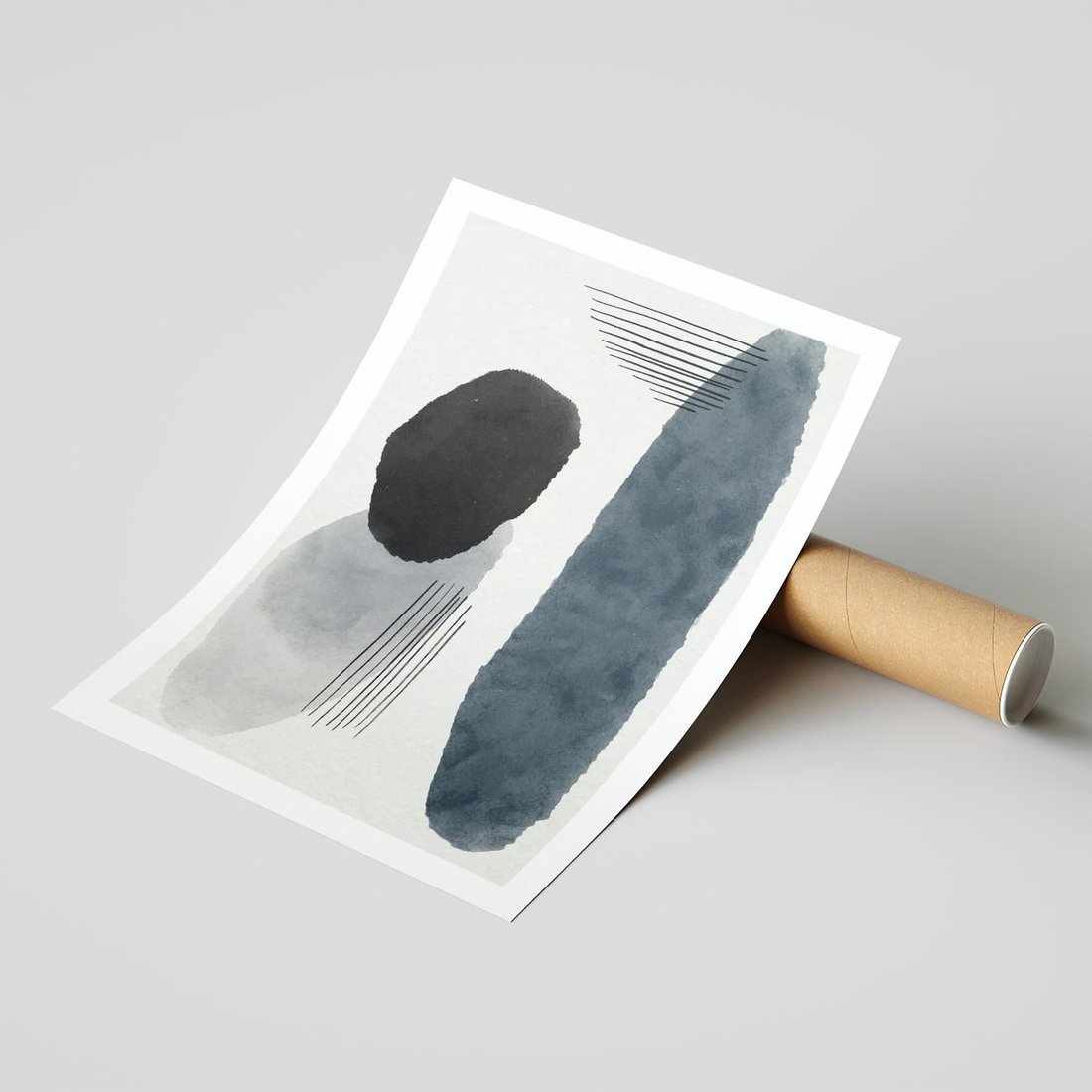 Plakat bez ramy 21x30 - Abstrakcyjna Gra Szarości - abstrakcyjna grafika, akwarela