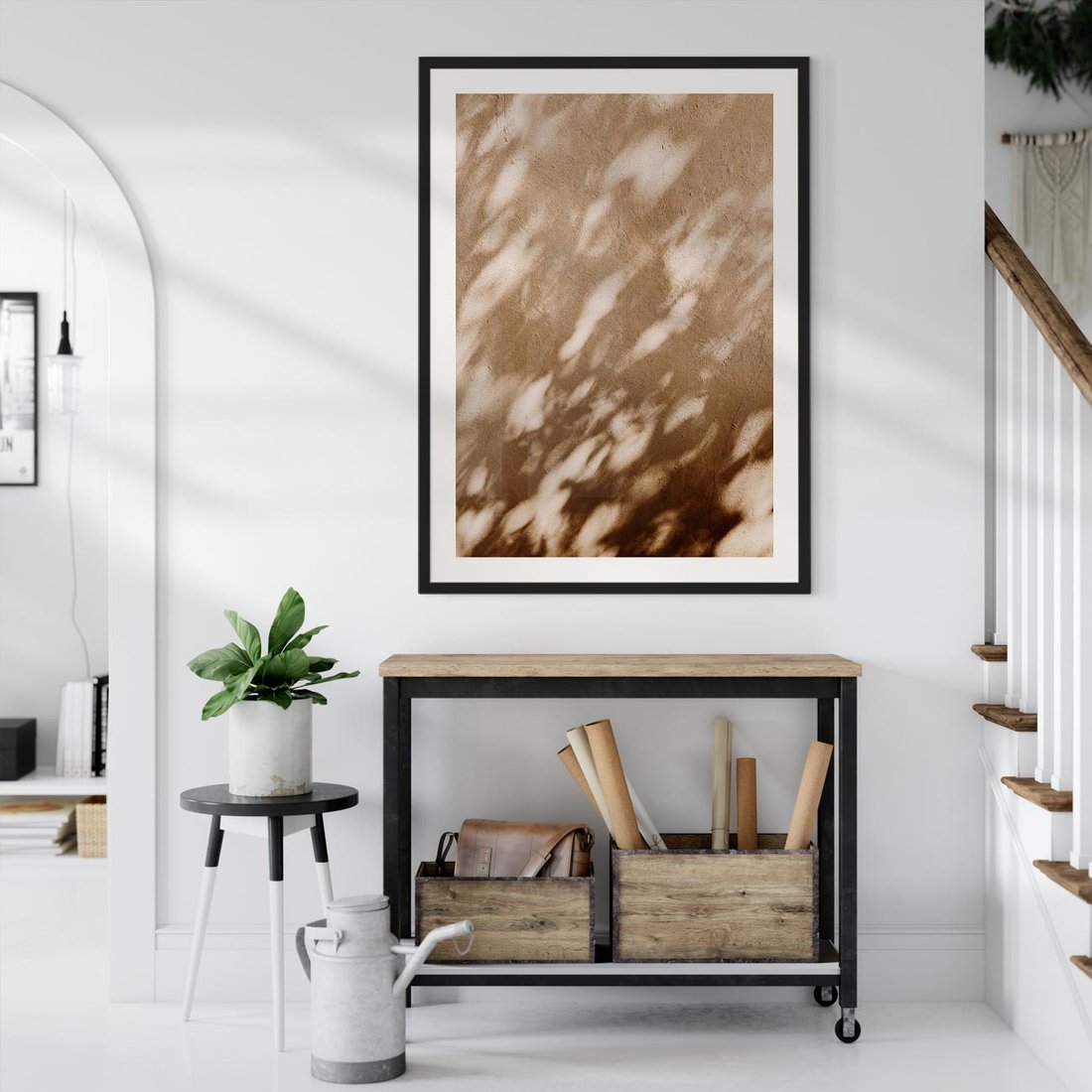 Plakat bez ramy 21x30 - Abstrakcyjna Kompozycja: Cień na Ścianie - cień na ścianie, beżowe kolory
